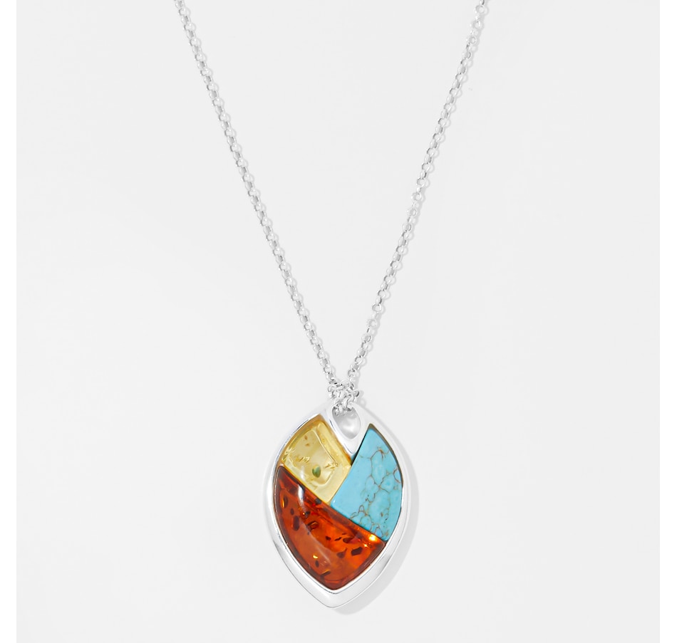 • Multi Turquoise style: (1) 15 mm x 8 mm (1) 8 mm x 6 mm freeform amber, and (1) 13 mm x 8 mm freeform turquoise