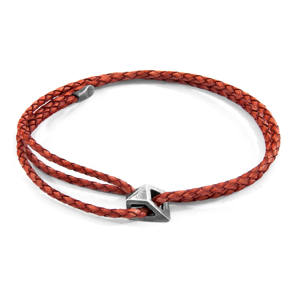 The Amber Red Arthur Silver and Braided Leather SKINNY Bracelet was both designed and skilfully handcrafted completely in Great Britain. Combining British craft manufacturing with a discerning modern-minimalist style, this ANCHOR & CREW bracelet features:2.5mm diameter genuine and natural round-shaped braided leather (GB)Secure solid .925 sterling silver mini facetted pyramidal clasp (GB) SIZINGThis bracelet is one size fits all, with the leather able to extend or tighten to suit your wrist size. To take the bracelet on or off your wrist, simply slide the bracelet over your hand after widening the two sides of the bracelet apart and tighten as necessary using the thread-through dangling end. Less is More.