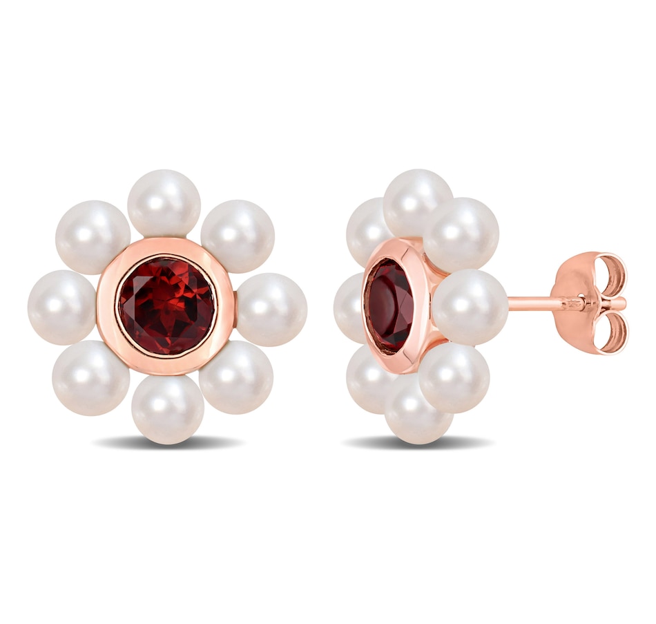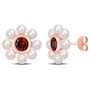 You'll finish all your ensembles with a classic and sophisticated look wearing these rose gold 3.5mm-4mm cultured freshwater pearl and garnet floral earrings from Amour Pearls.