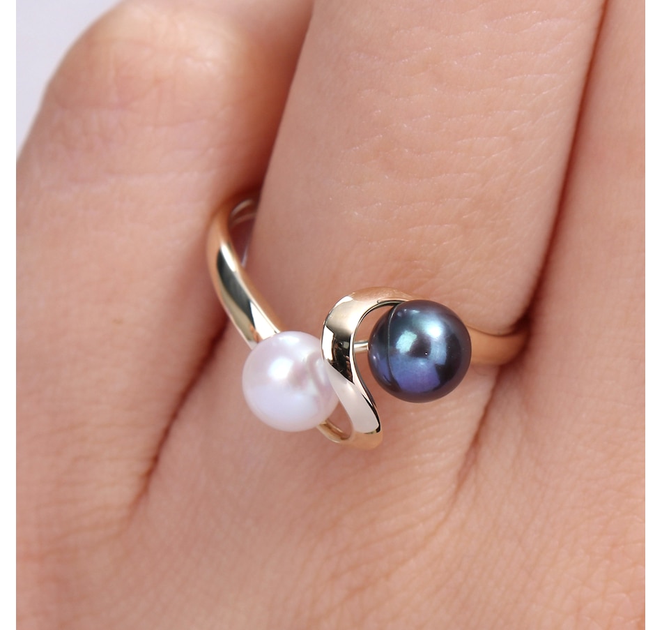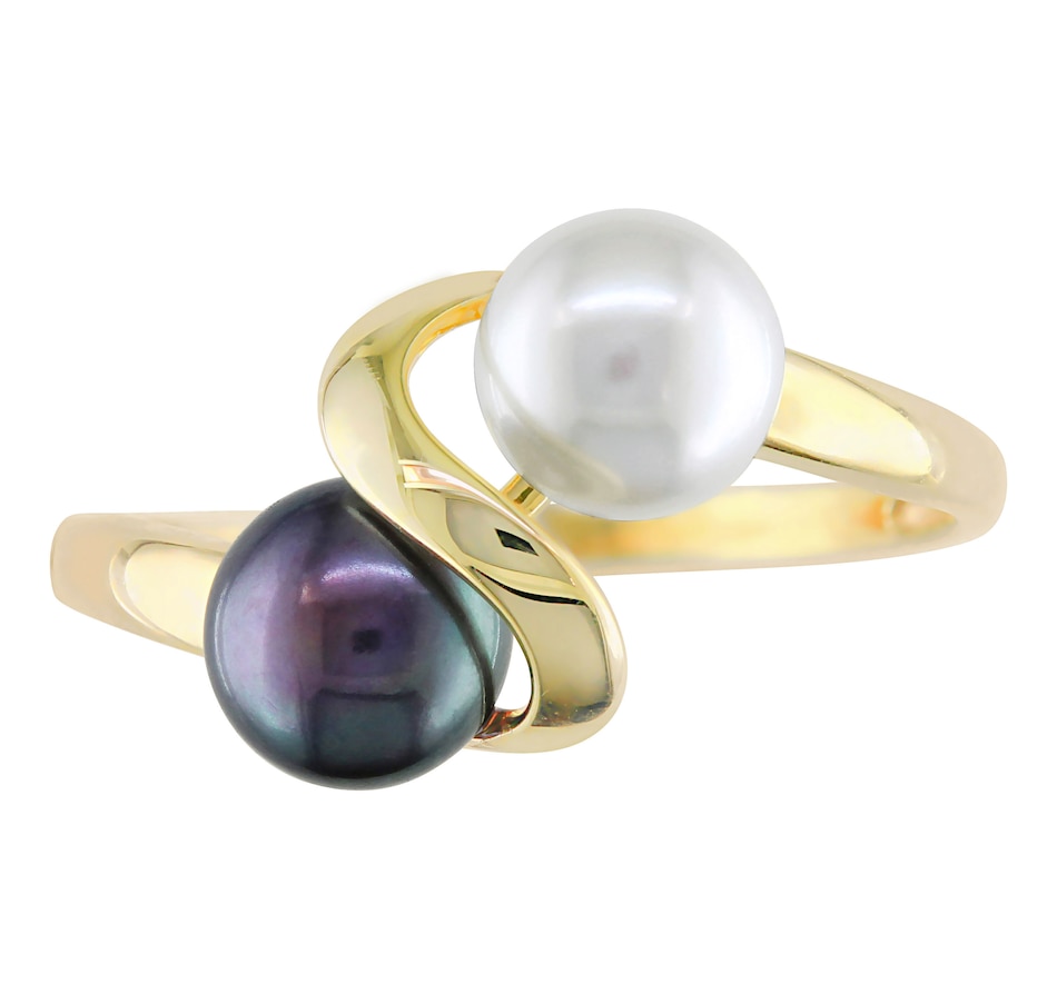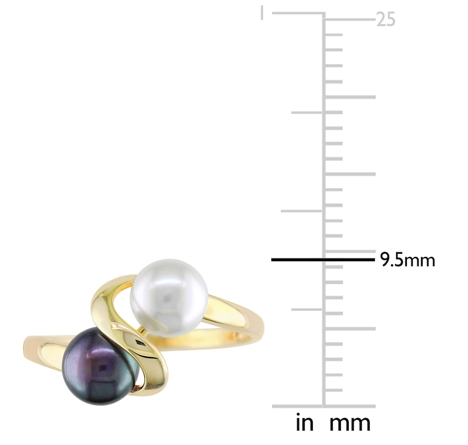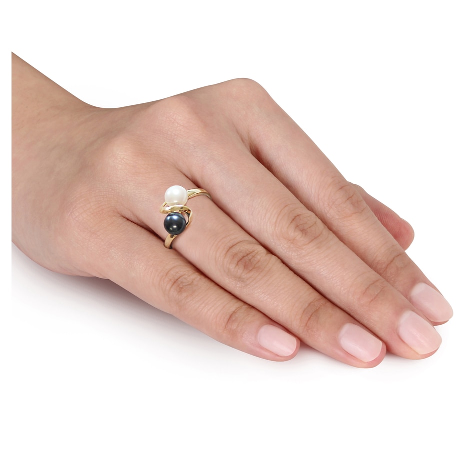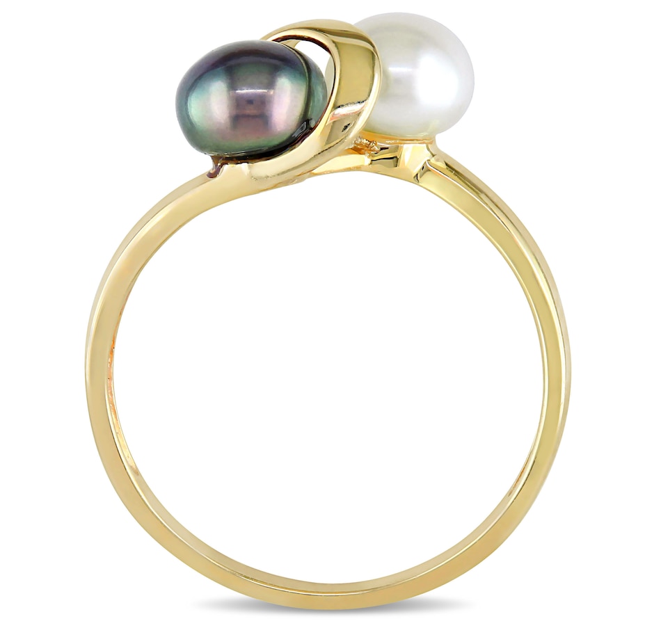 10K Yellow Gold 5.5-6mm Black & White Cultured Freshwater Fashion Ring