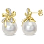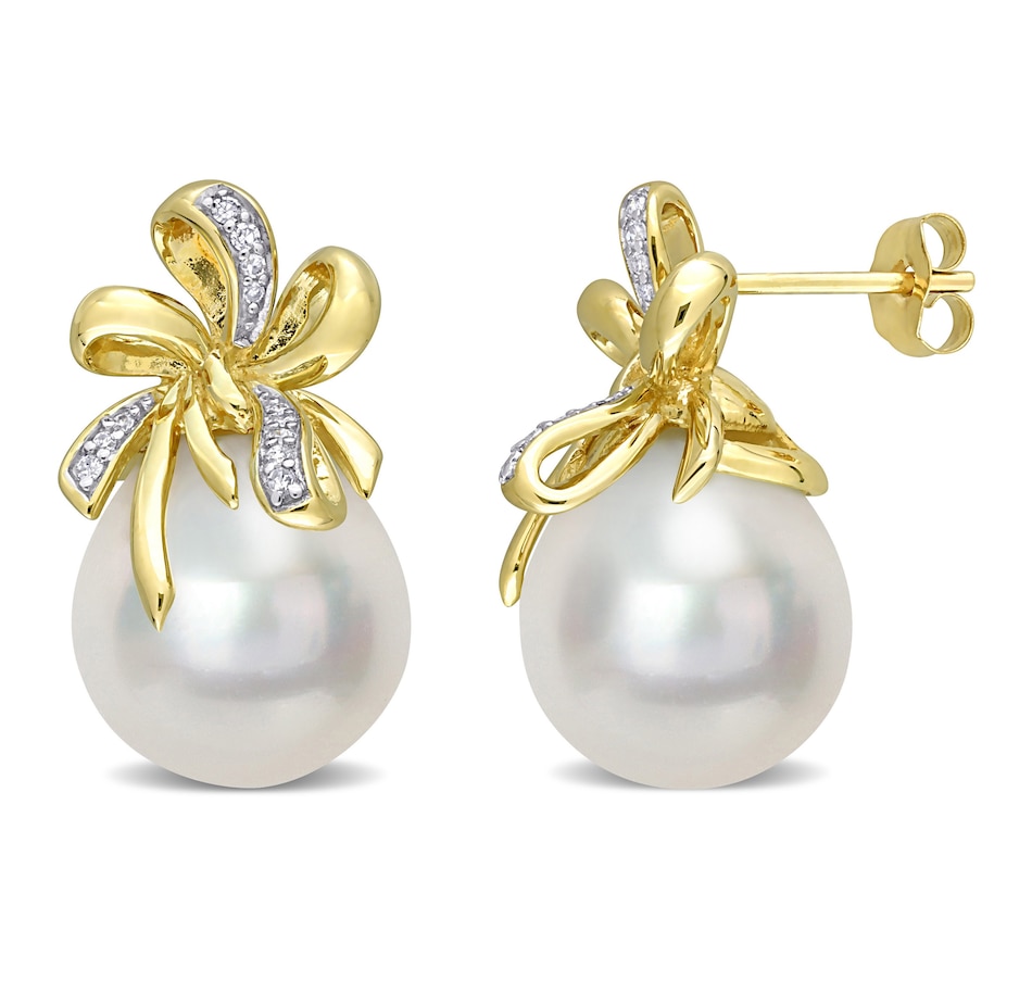 10K Yellow Gold South Sea Pearl And Diamond Floral Earrings