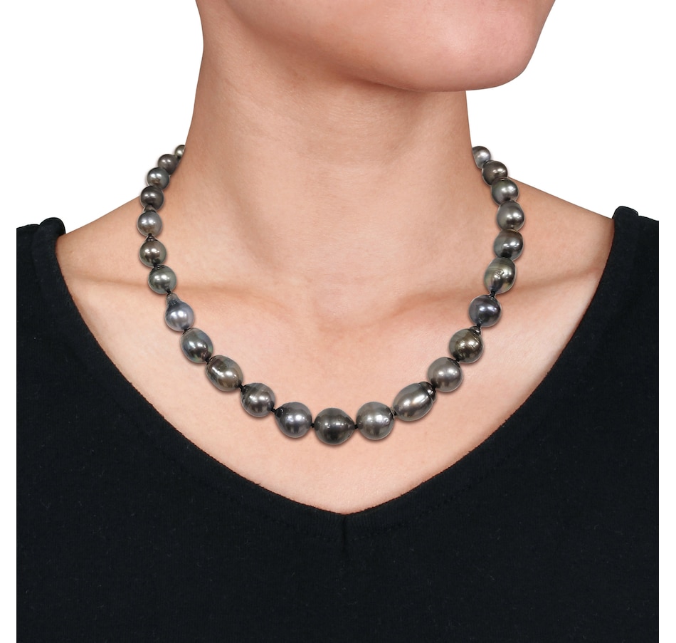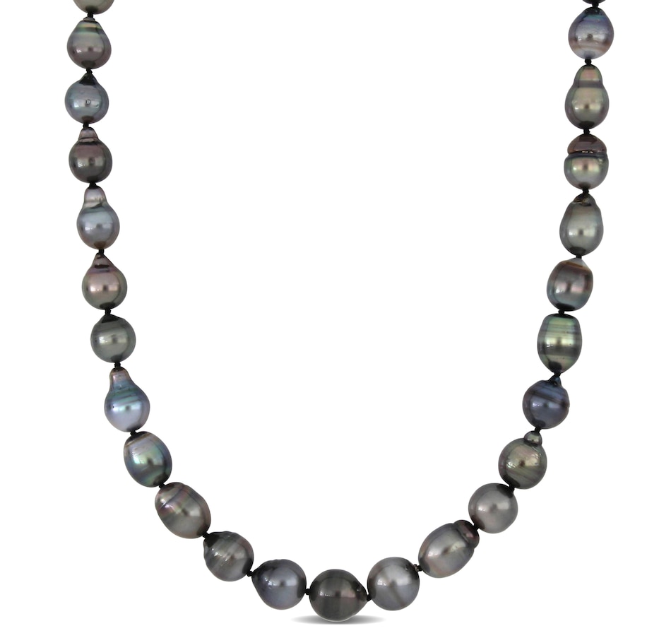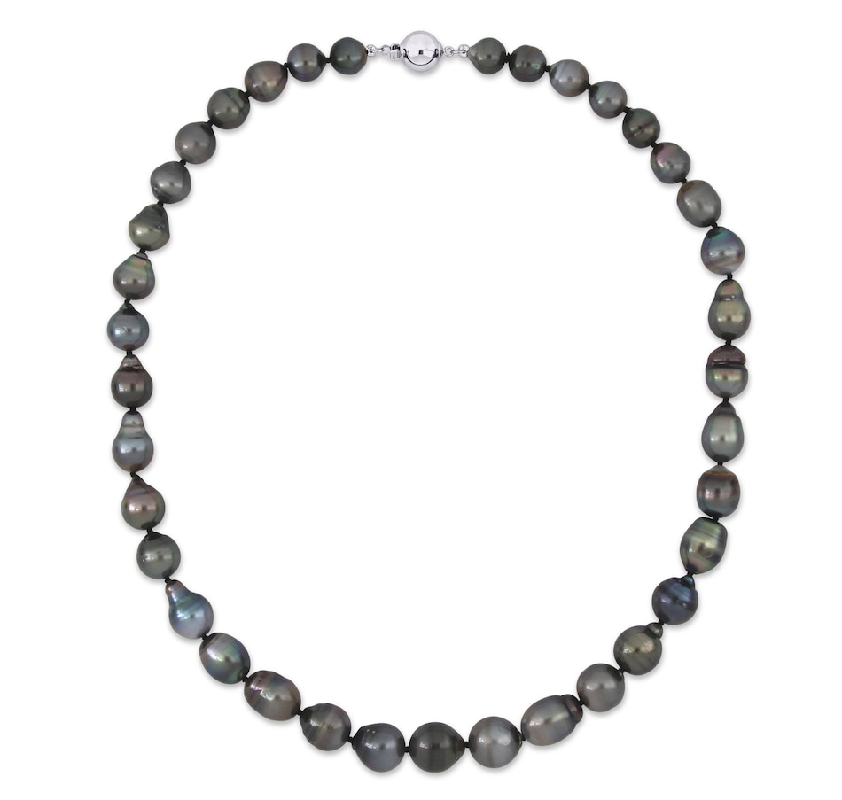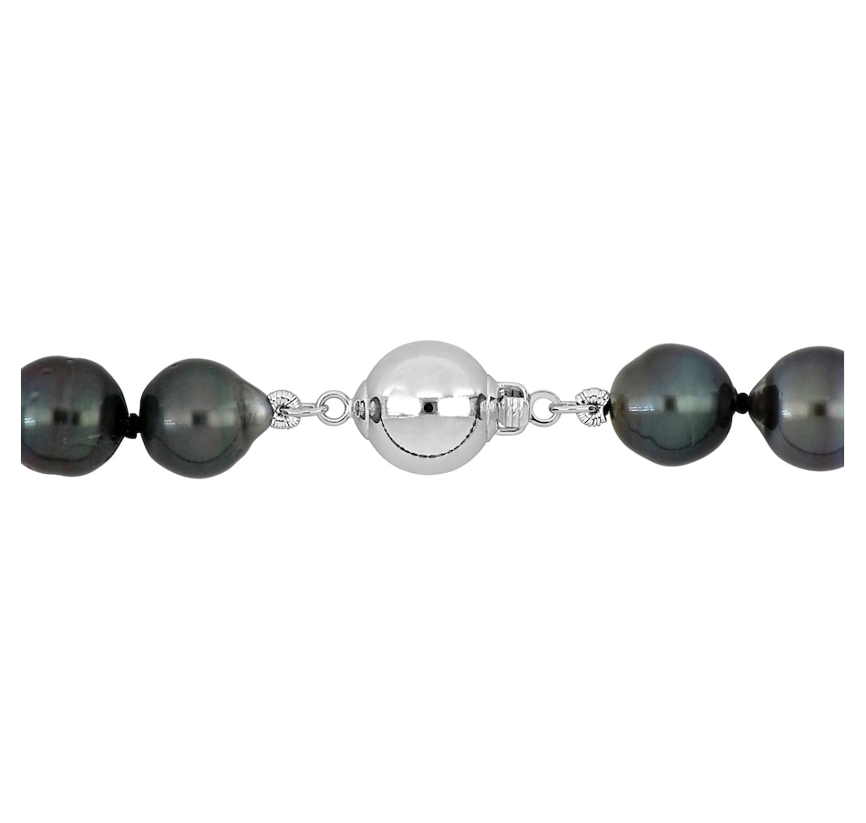 8-11mm Cultured Tahitian Black Pearl Strand Necklace w/ Silver Ball Clasp