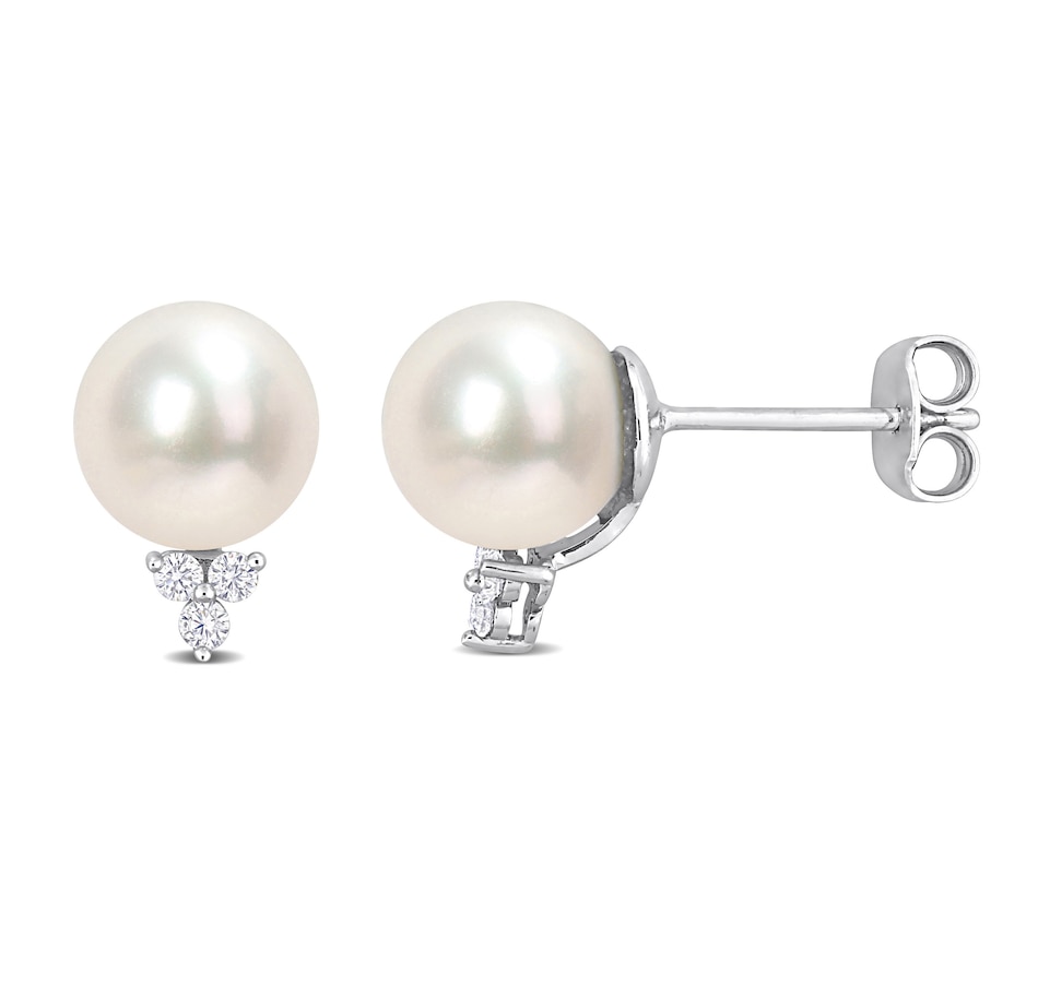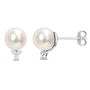 Sterling Silver Cultured Freshwater Pearl And Diamond Stud Earrings