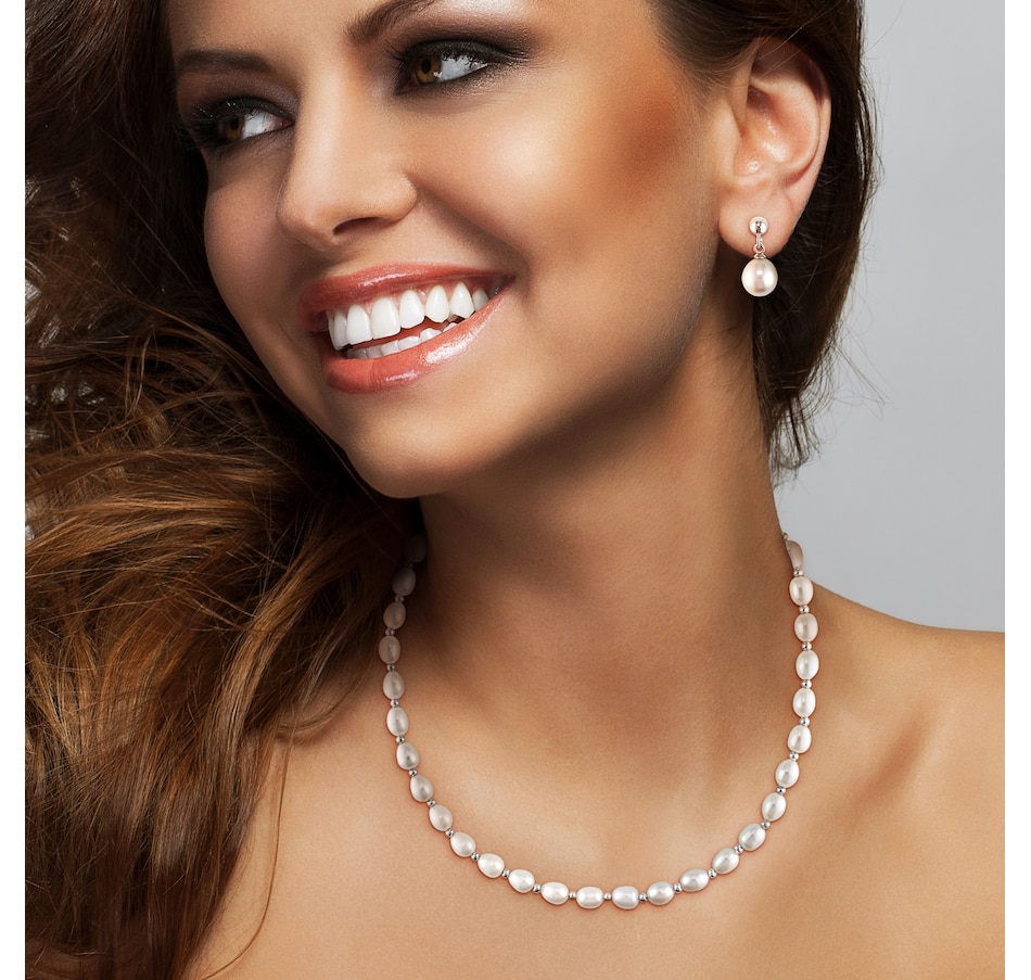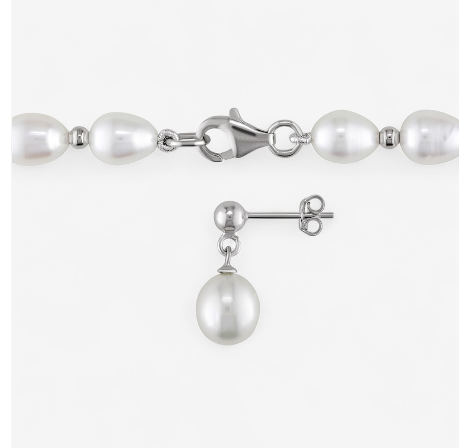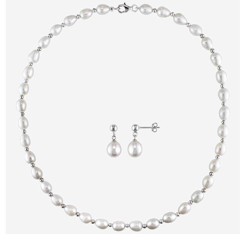 Sterling Silver Freshwater Cultured Pearl Necklace and Earring Set