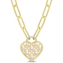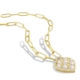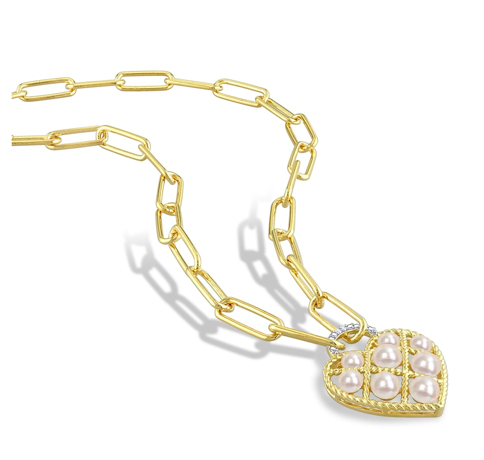 Sterling Silver/Yellow Gold Plate Cultured Freshwater Pearl And Diamond Accent Heart Paperclip Chain Link Necklace