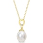 Sterling Silver/Yellow Gold Plated Cultured South Sea Pearl And White Topaz Drop Pendant With Chain
