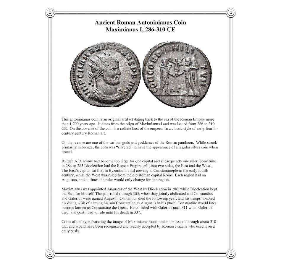 • Ancient Roman Maximianus Antonianus Coin 286–310 CE