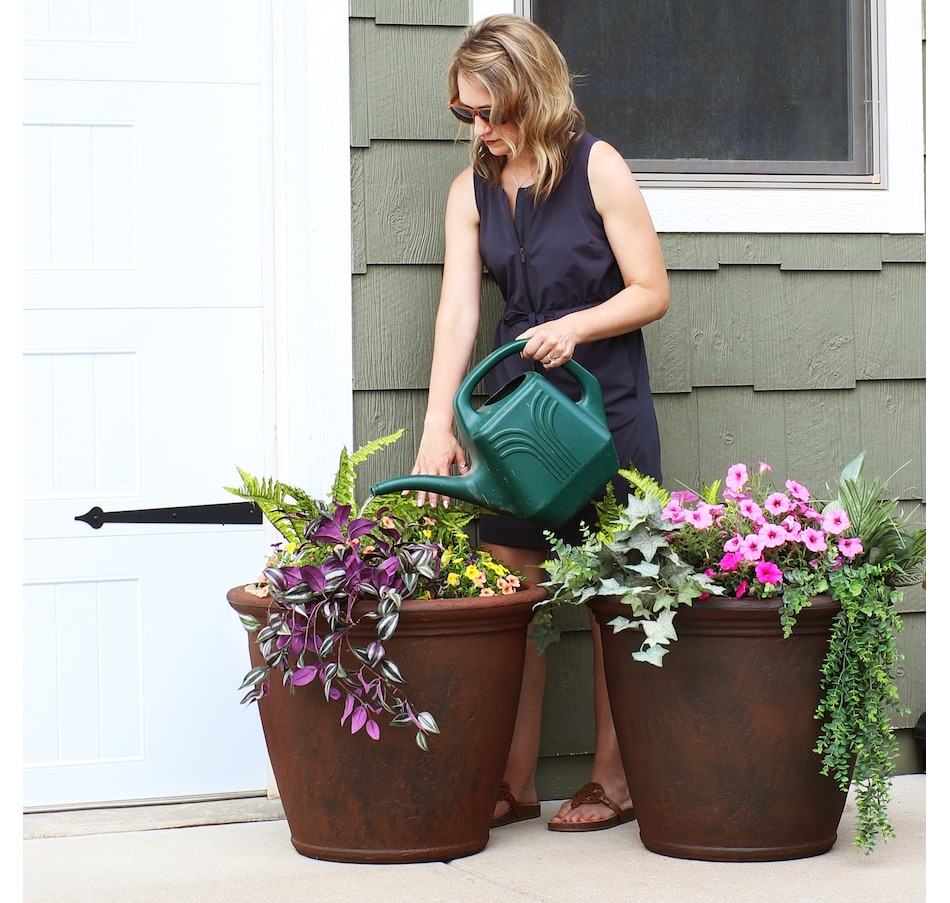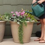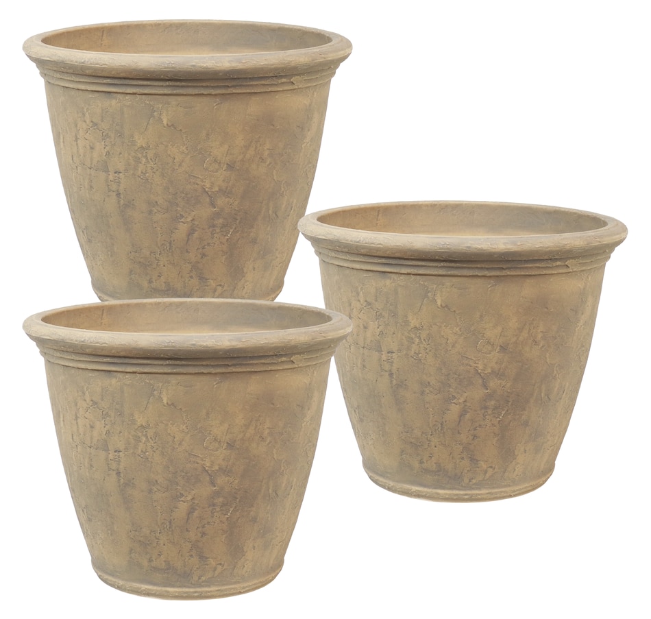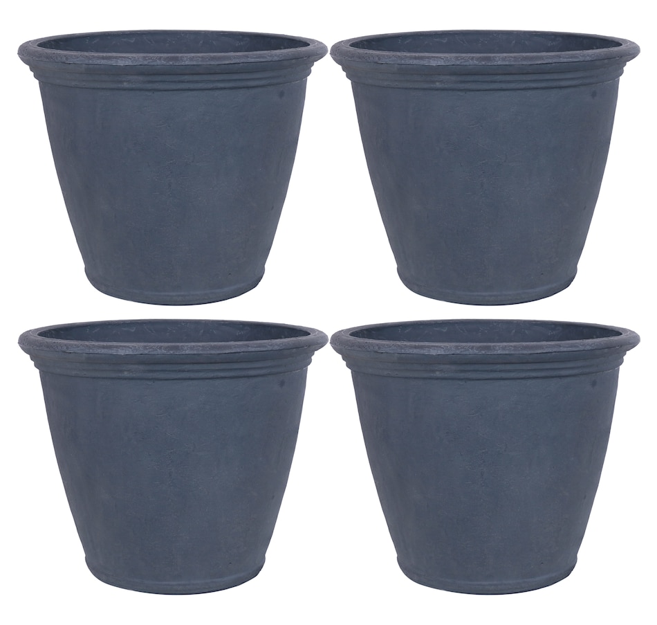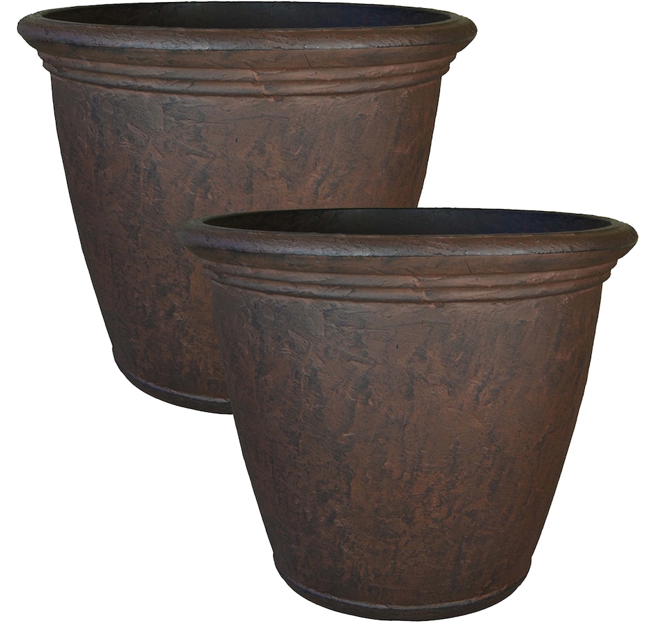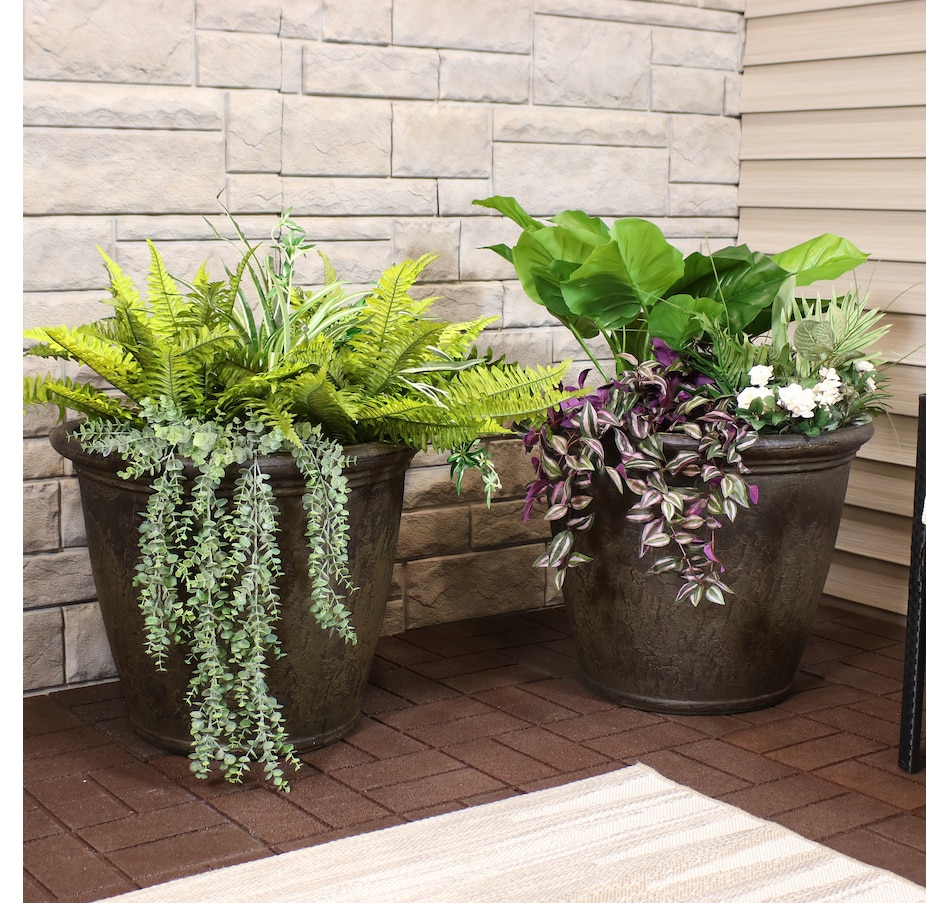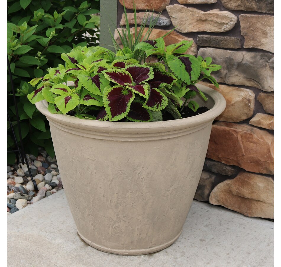 Add classic style and elegance to flowers, herbs, and other plants with the 24" Anjelica planter. Use the decorative planter in any indoor space or outdoors on the patio, deck, porch, garden, or yard. The large garden pot features a sleek, rolled rim for a contemporary and decorative touch. It is designed for all weather conditions due to its linear, low-density polyethylene (polyresin) construction and UV-resistant, hand-painted finish. The double-wall design with full-depth inner wall allows for optimal root insulation without compromising the soil capacity. The planter's outer wall can be filled with gravel or sand to weigh it down to withstand windy conditions. A drainage hole can be added to the area indicated on the bottom of the planter. Drill with a 1/4" bit through both walls for proper drainage. If using the planter indoors, be sure to use a protective saucer to protect floors from spills and water damage.