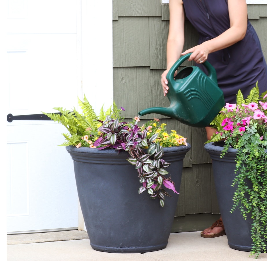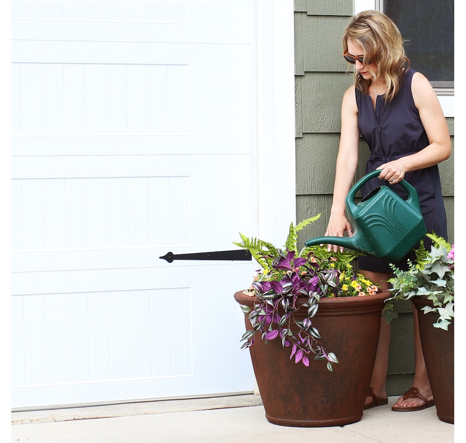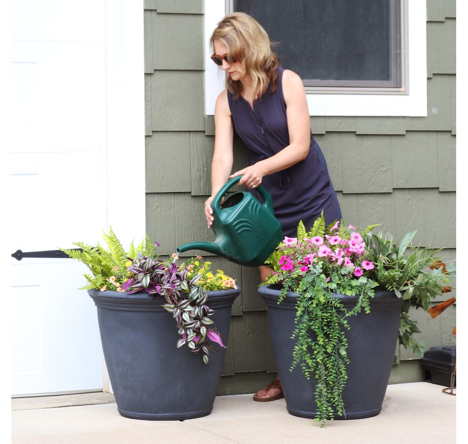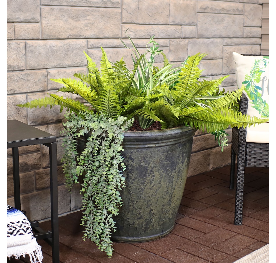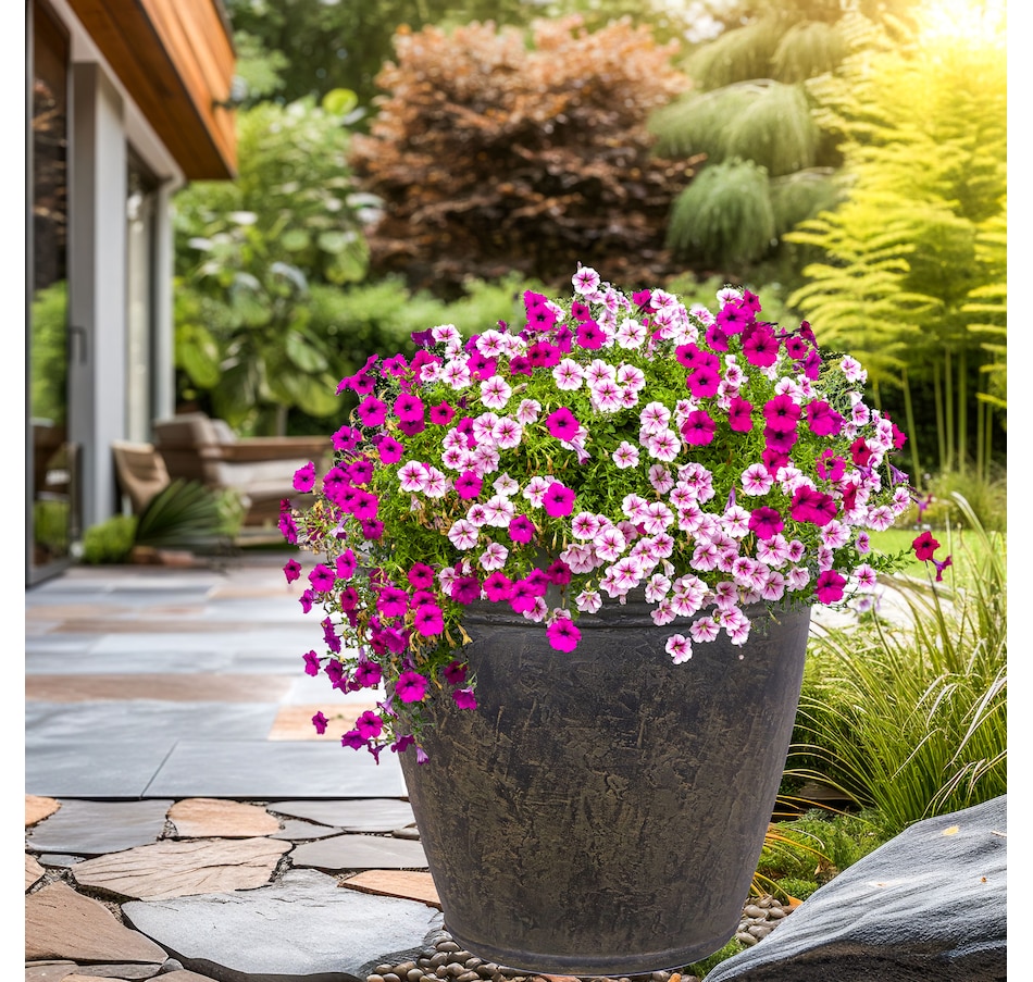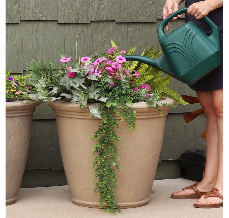Add classic style and elegance to flowers, herbs, and other plants with the 24" Anjelica planter. Use the decorative planter in any indoor space or outdoors on the patio, deck, porch, garden, or yard. The large garden pot features a sleek, rolled rim for a contemporary and decorative touch. It is designed for all weather conditions due to its linear, low-density polyethylene (polyresin) construction and UV-resistant, hand-painted finish. The double-wall design with full-depth inner wall allows for optimal root insulation without compromising the soil capacity. The planter's outer wall can be filled with gravel or sand to weigh it down to withstand windy conditions. A drainage hole can be added to the area indicated on the bottom of the planter. Drill with a 1/4" bit through both walls for proper drainage. If using the planter indoors, be sure to use a protective saucer to protect floors from spills and water damage.