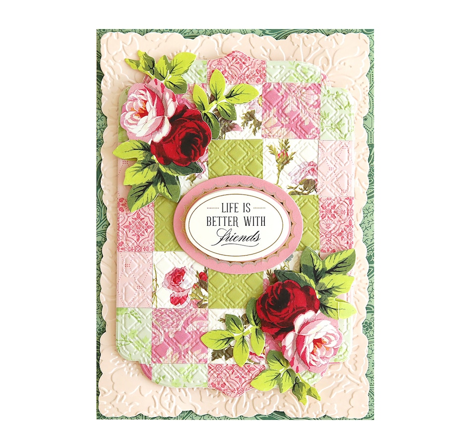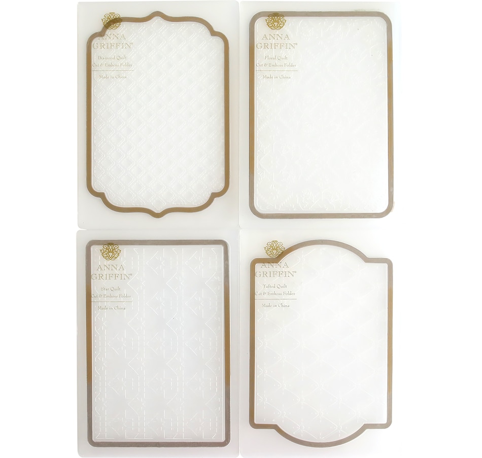 Beautiful things are created one stitch a time! Use these cut and emboss folders from Anna Griffin to create four different quilted layers for your cards.