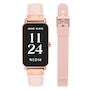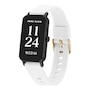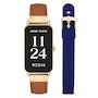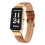 This smart watch from Anne Klein comes in a 42mm x 25mm zinc alloy IP gold plated polished case, and features an IP gold plated crown. It fits to your wrist with a 16mm genuine brown leather strap with an IP gold plated metal end piece, and two loops with an IP gold plated stainless steel buckle and quick release pushpin. The top of the buckle is handsomely etched with "Anne Klein".