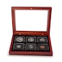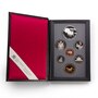 This 1967 centennial proof-like coin set from the cent to the silver dollar comes presented in a mahogany finish case. In celebration of Canada's 100th birthday, the mint held a competition for special centennial coin designs. After receiving many submissions from artists across Canada, the mint panel selected the wildlife designs of the New Brunswick artist and sculptor Alex Colville.