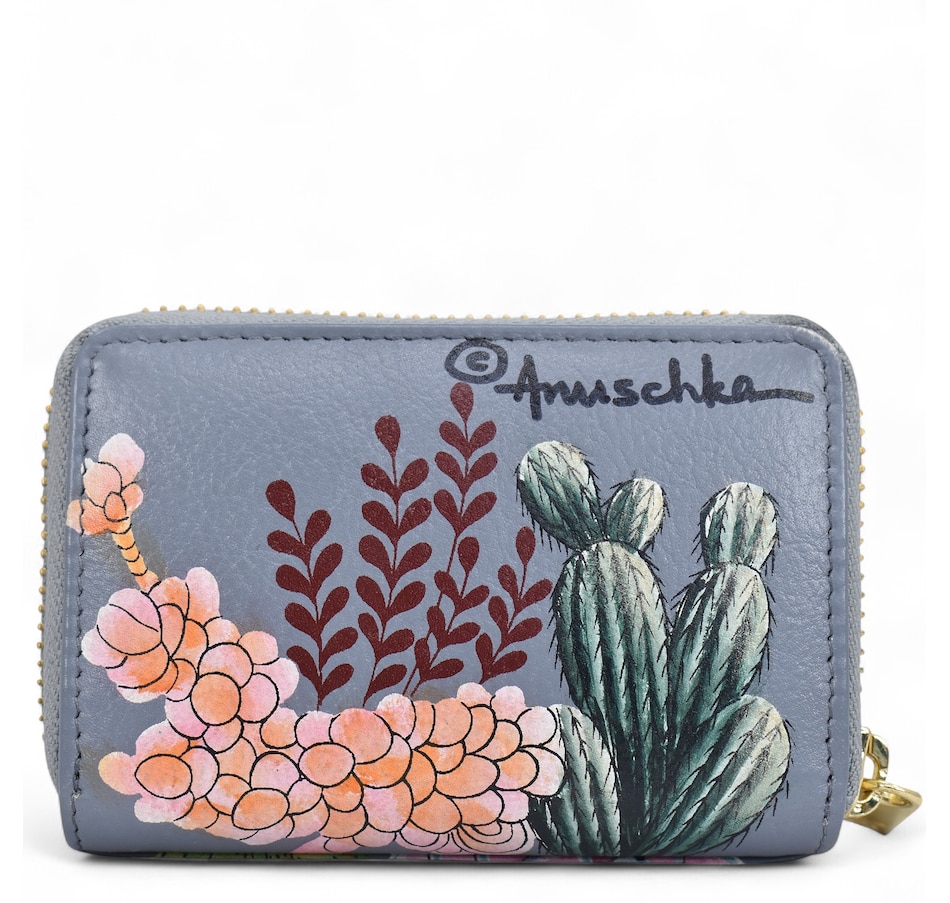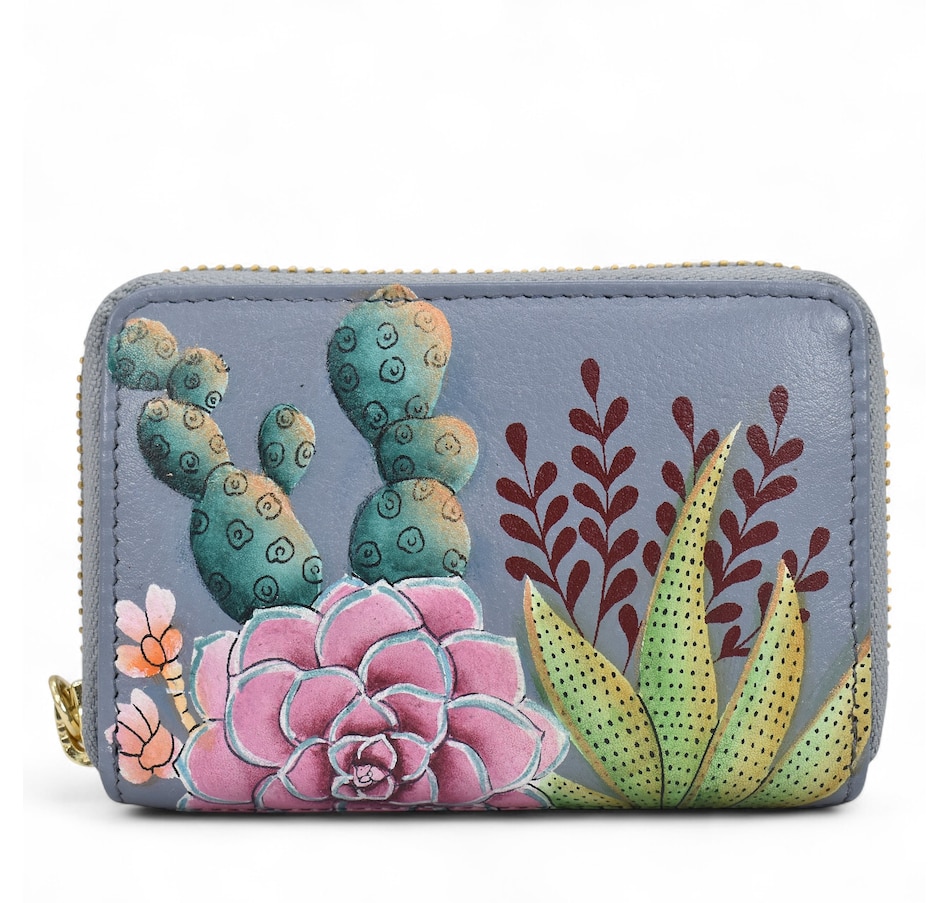 Available in a selection of different hand painted patterns and colours, you'll accessorize every look in elevated style with this beautiful card holder from Anuschka.
