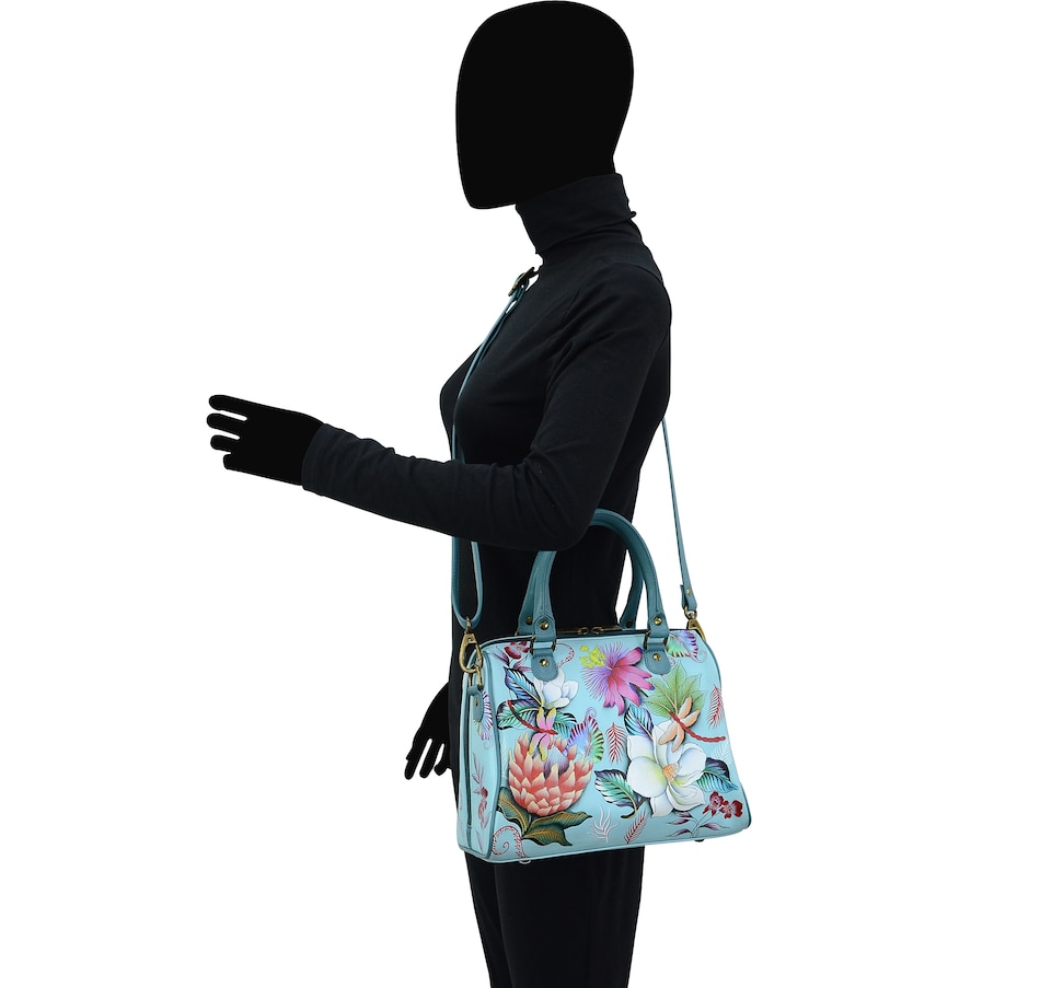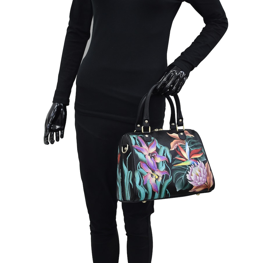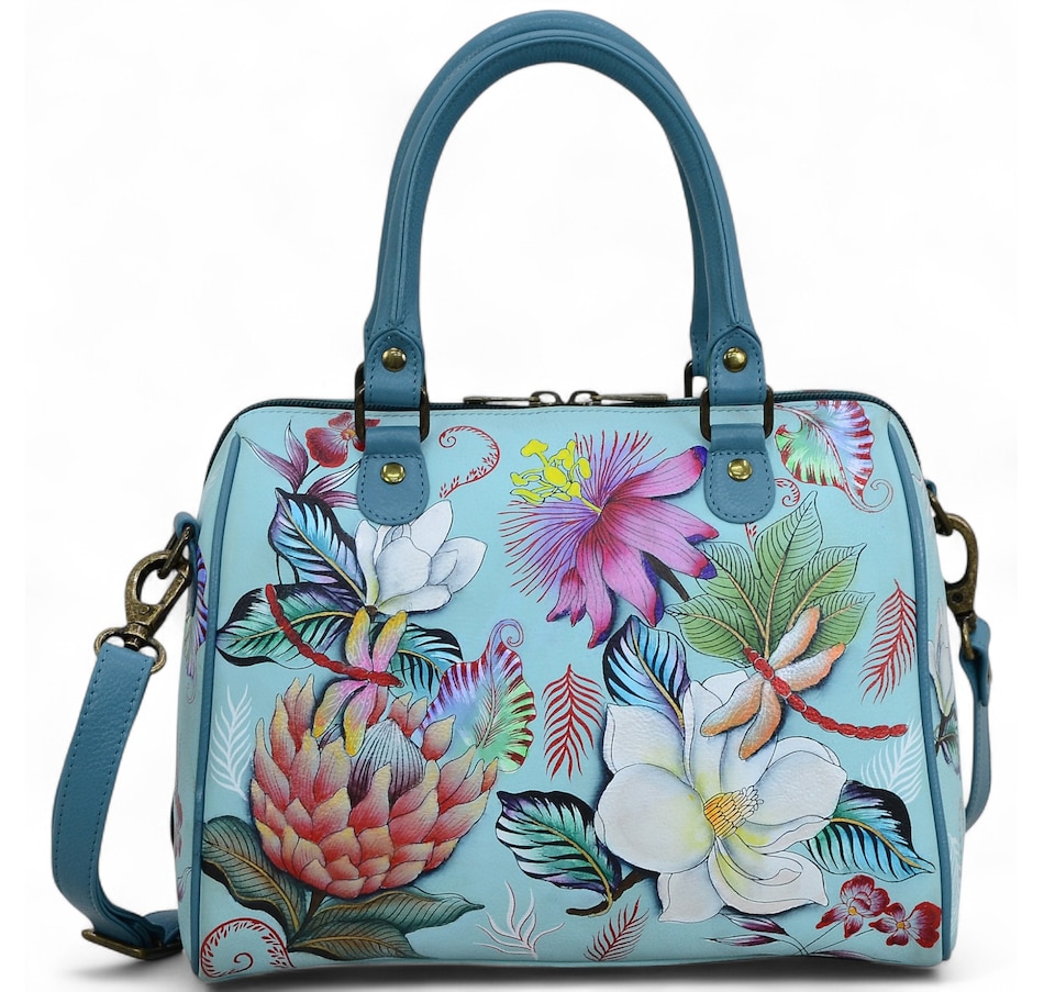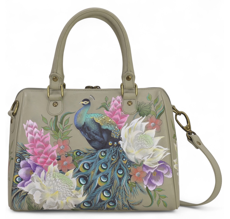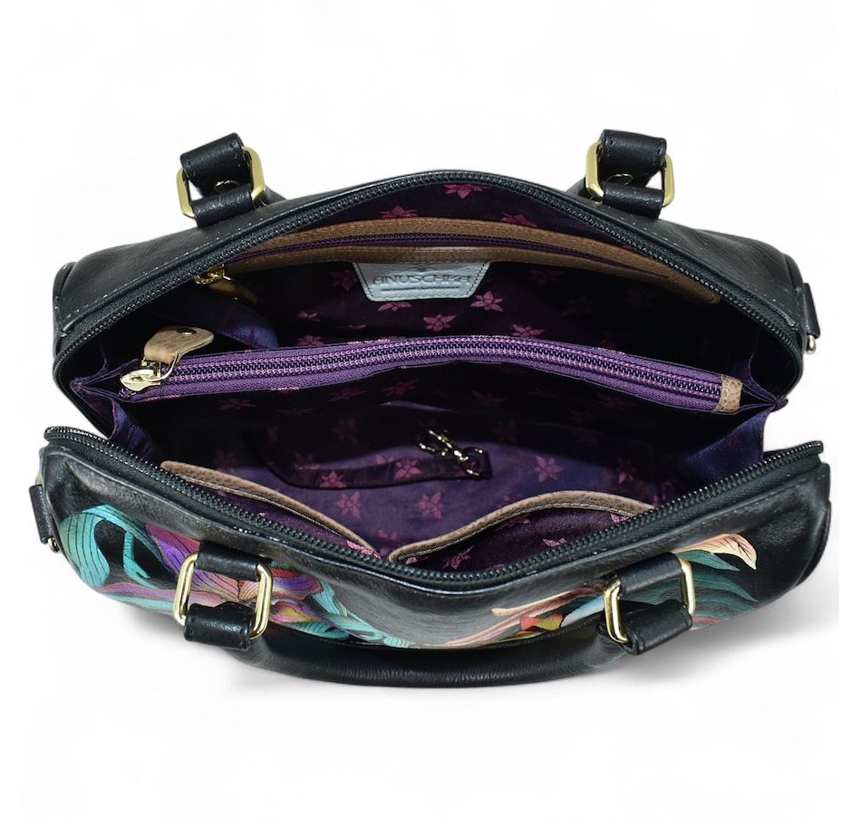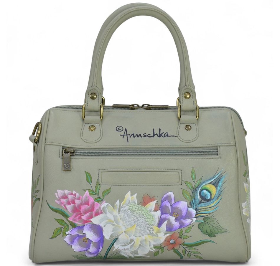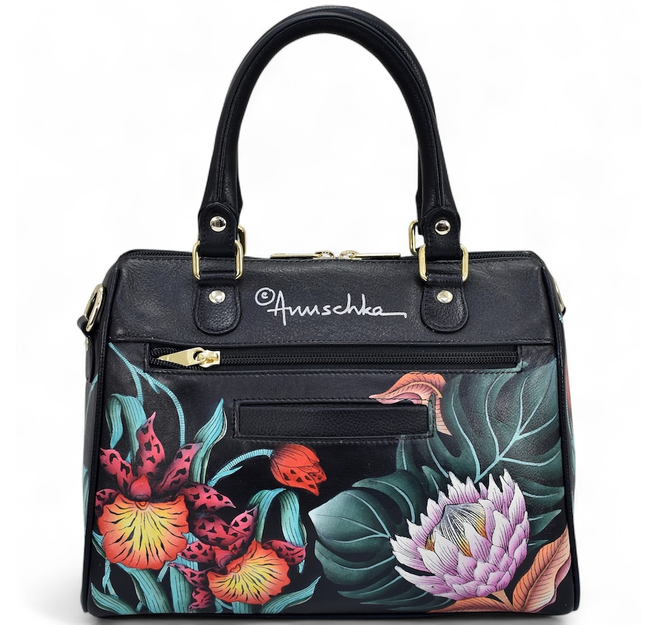Available in a trio of different hand painted patterns and colours, you'll accessorize every look in elevated style with this beautiful zip around satchel from Anuschka.