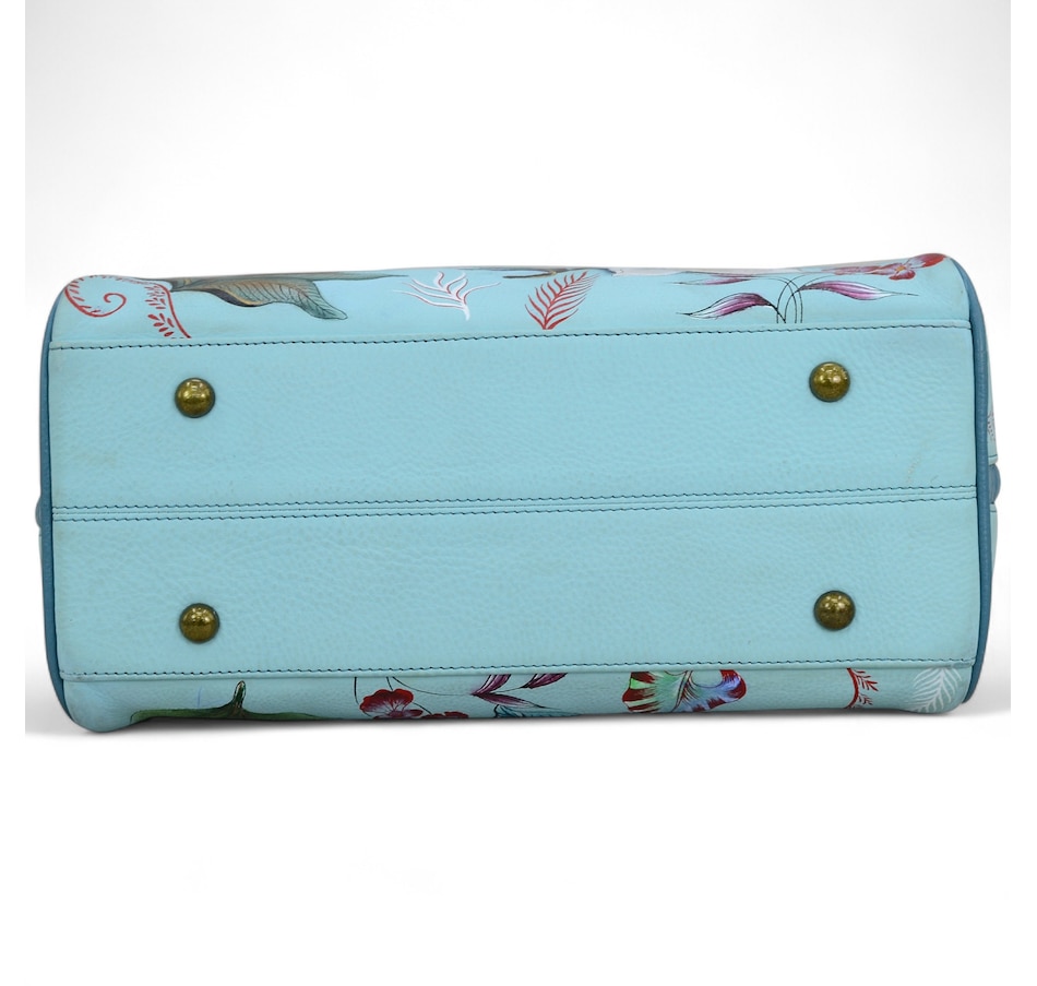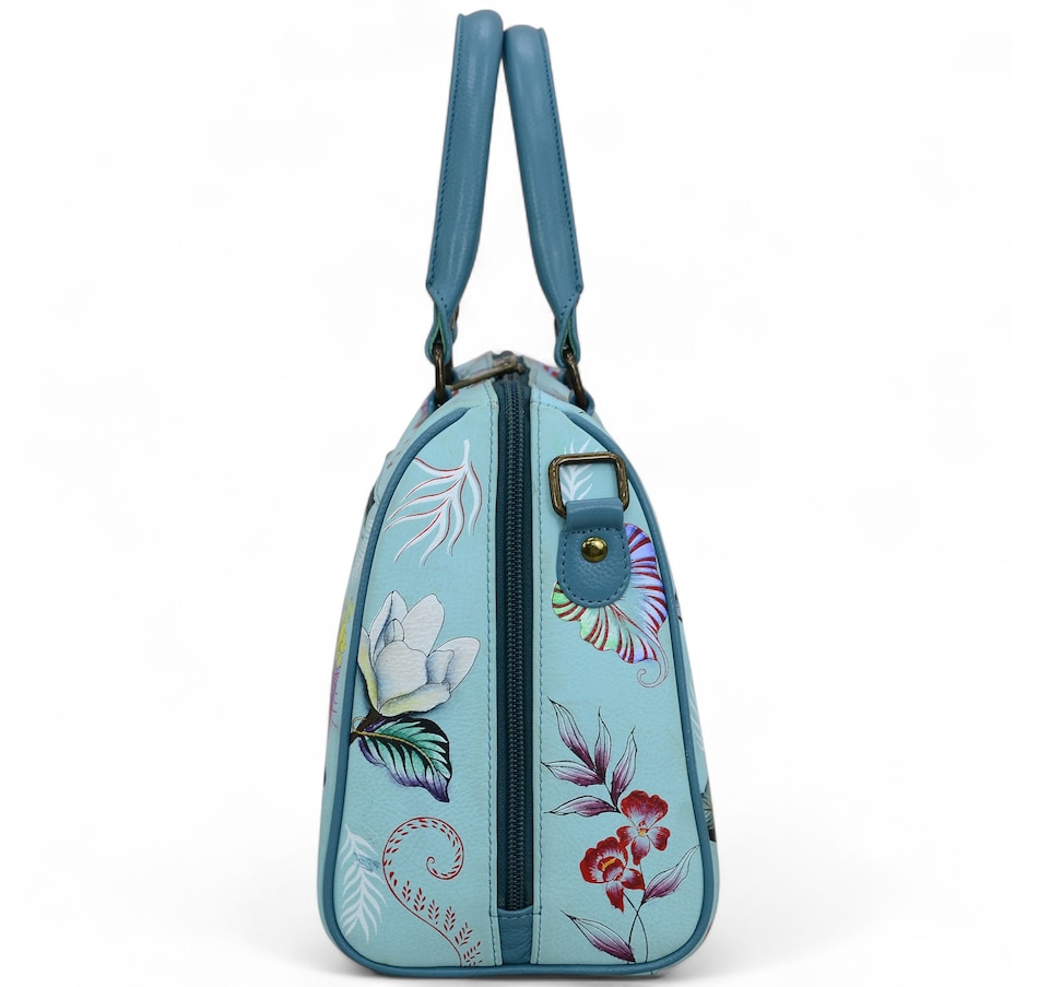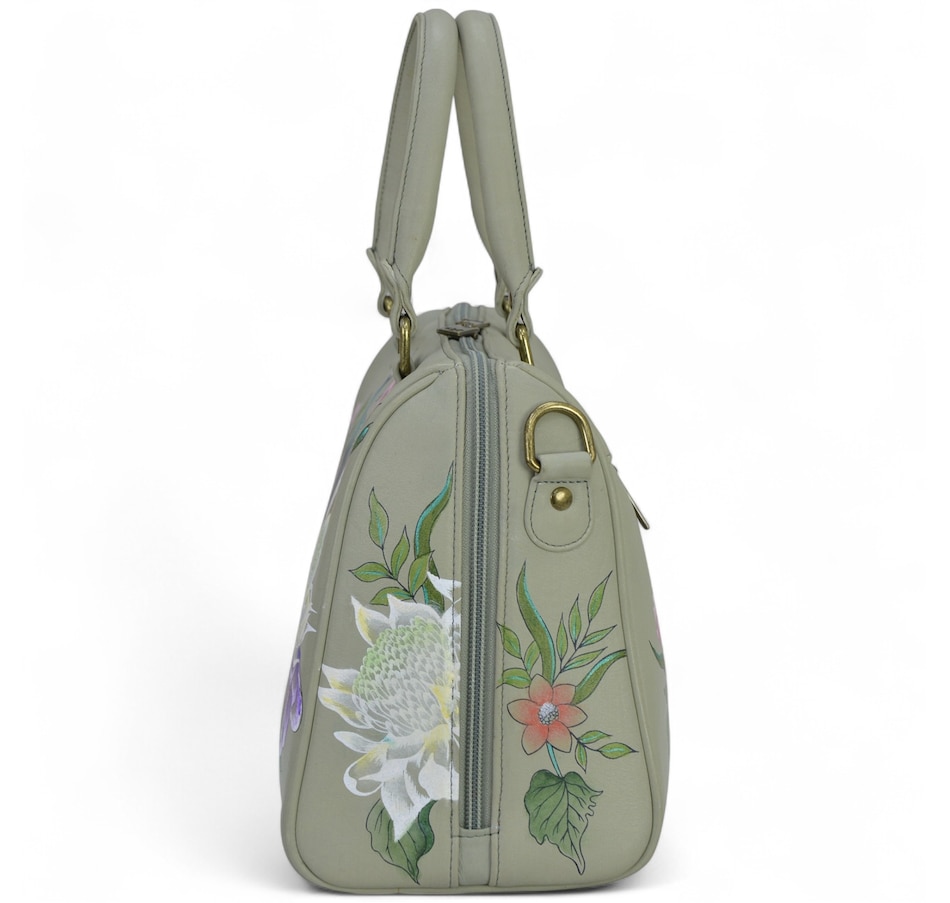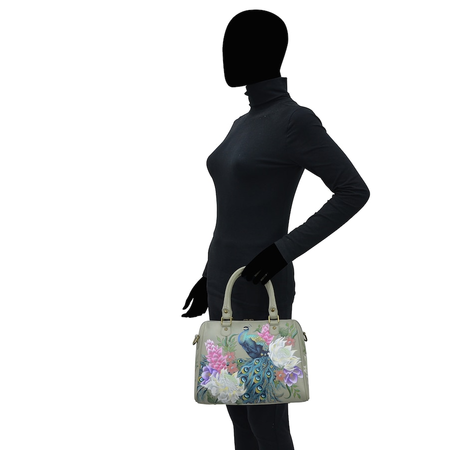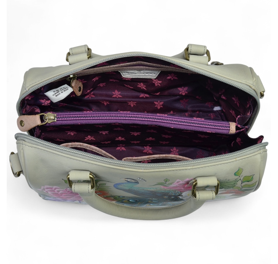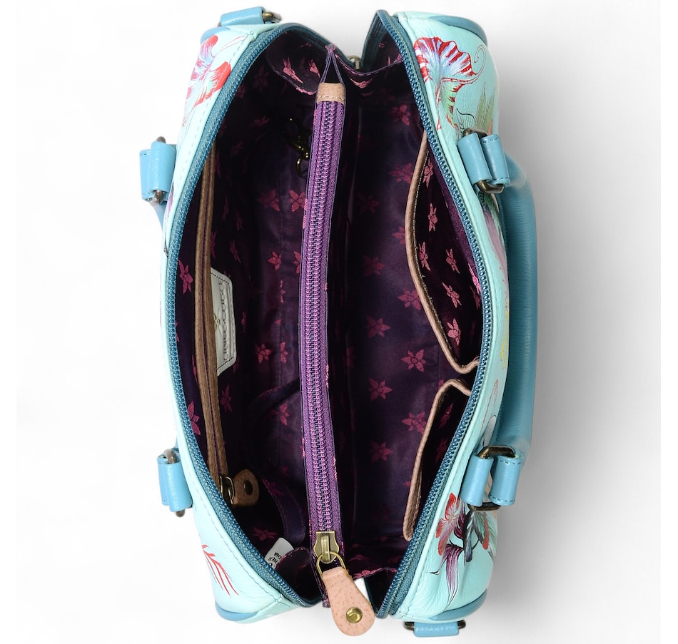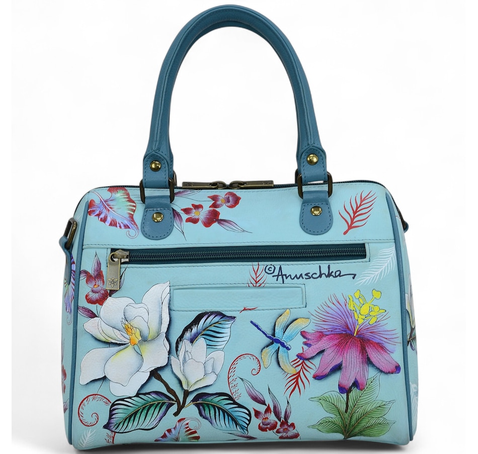 Available in a trio of different hand painted patterns and colours, you'll accessorize every look in elevated style with this beautiful zip around satchel from Anuschka.