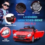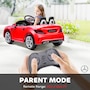 Kids will feel like race car drivers, thanks to the licensed kids electric car from Aosom. The LED lights, seatbelt, steering wheel, horn and music provide a realistic experience as they cruise in style, whilst playing their favorite songs through ports. 5 built-in songs, and 2 stories for extra fun. Parents can join the fun, using the remote control to navigate the ride-on. A seatbelt for security, so they'll stay safe when riding this electric car for kids 3-6 years.Features: