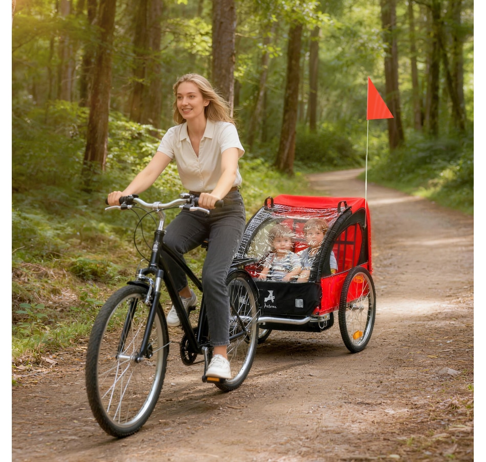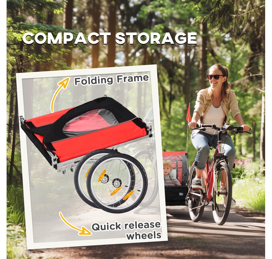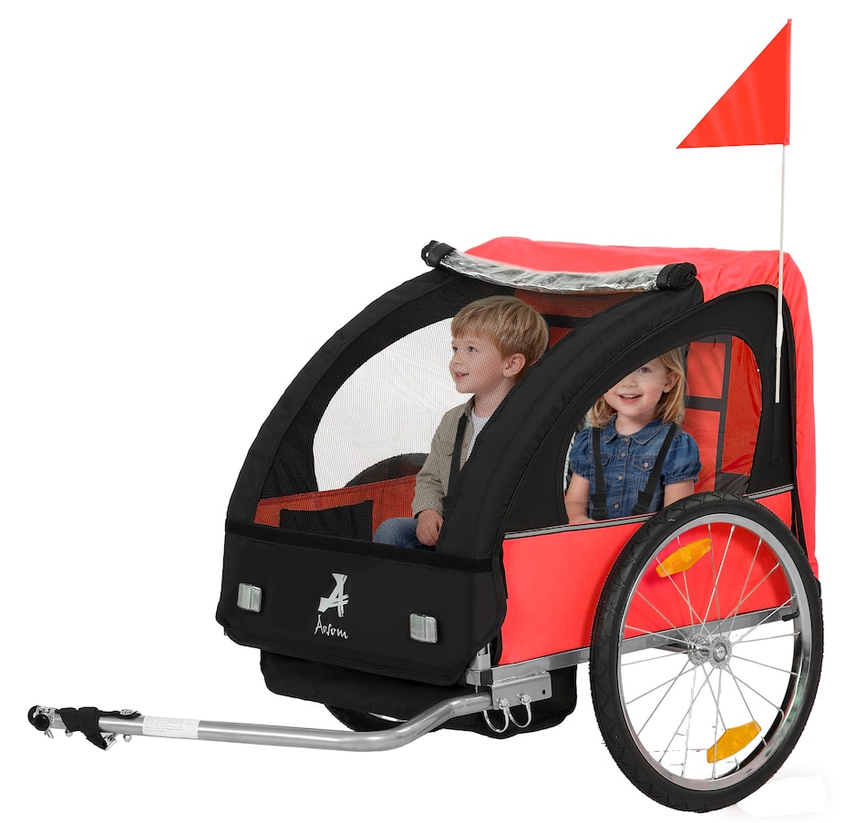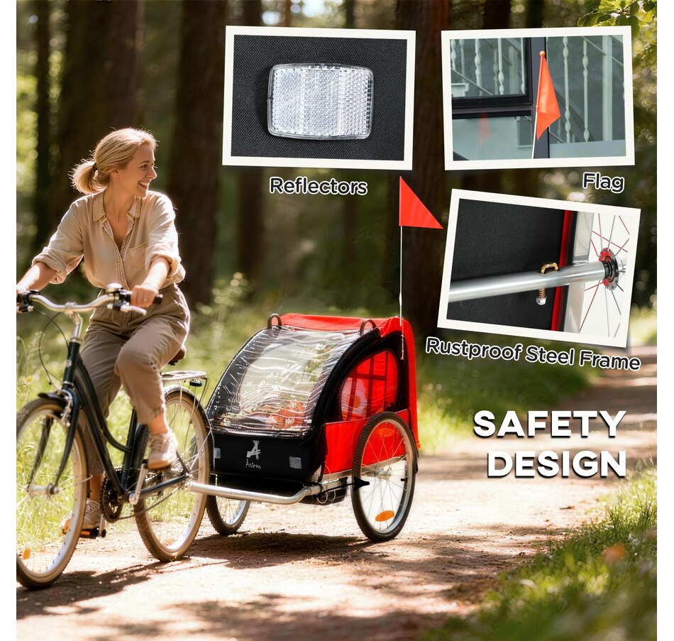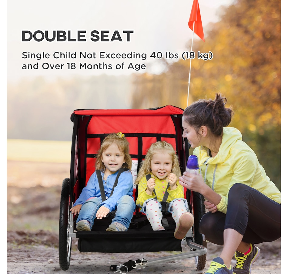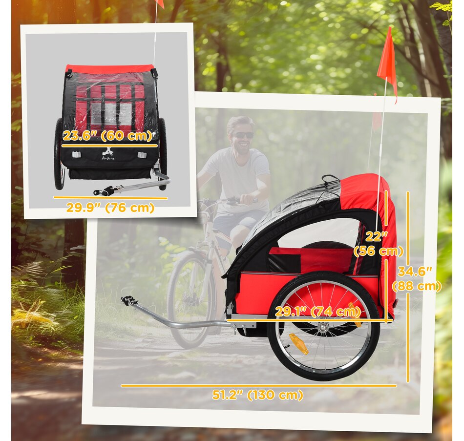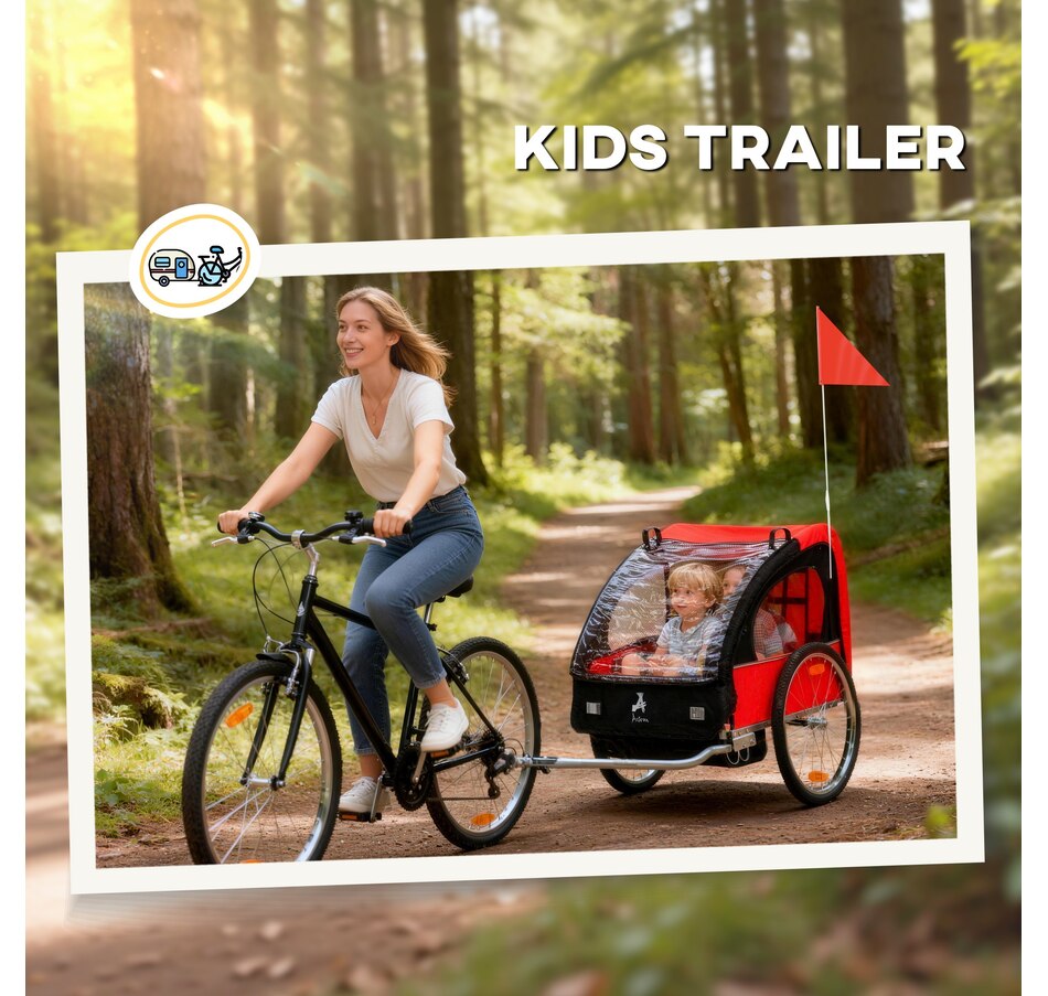 For children who are just as adventurous as their parents, what better way to experience the outdoors together than with this bicycle trailer from Aosom! Inside the passenger trailer, we include two seats so your child can bring a friend, and fit each of them with a five-point safety harness to keep them strapped in securely. Using a mix of Oxford fabric and transparent panels, your child is able to see outside in this bike wagon, giving them privacy too.