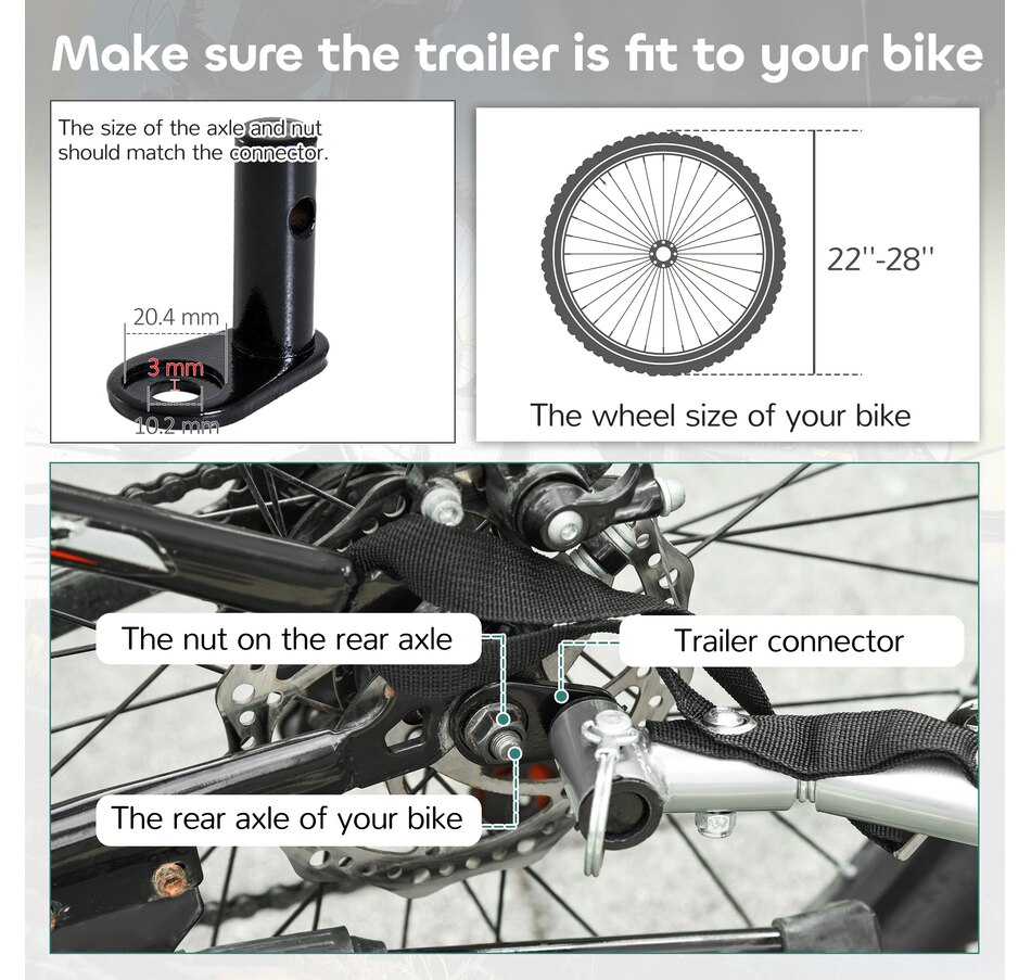 ● Maximum load 88 lbs(Including trailer deadweight), assembly required;