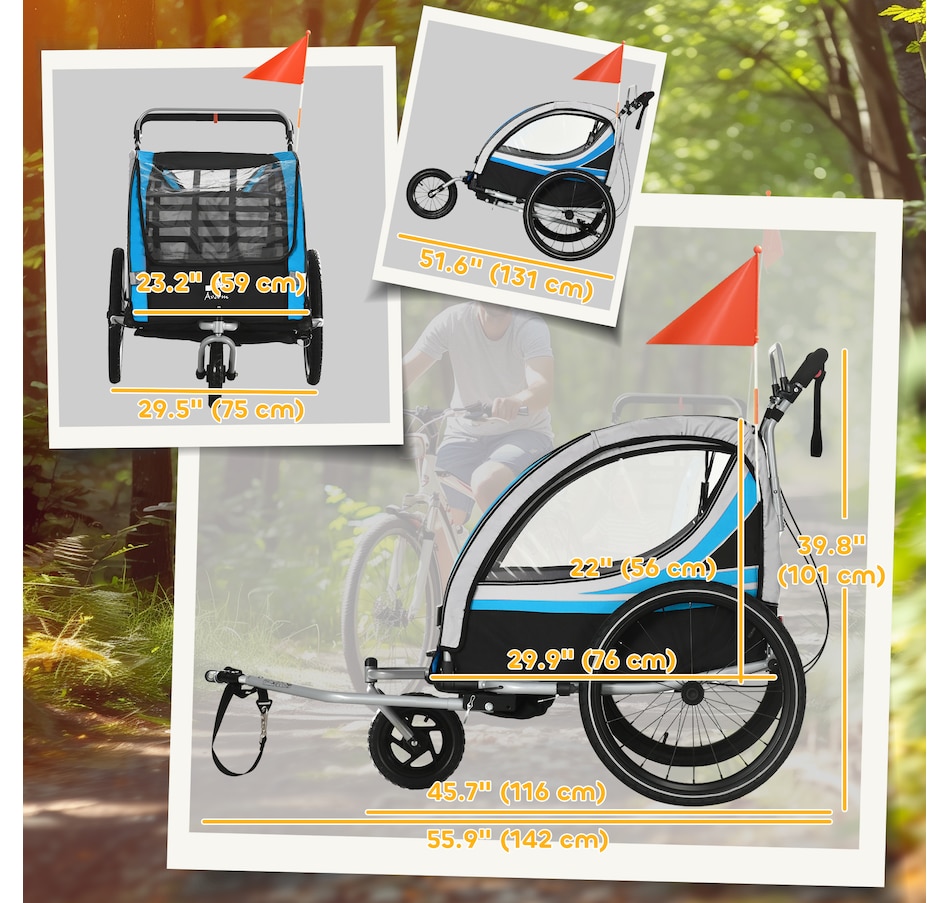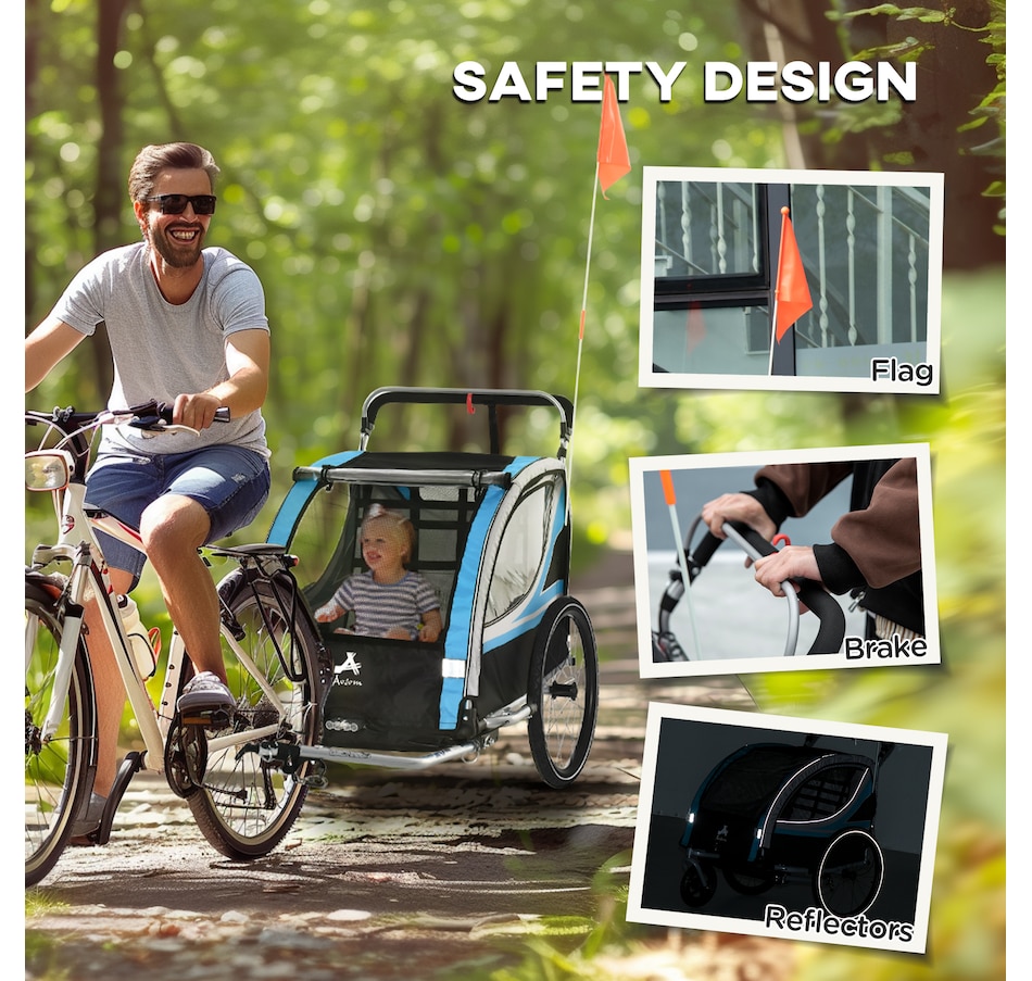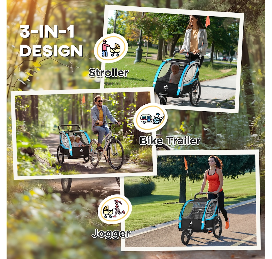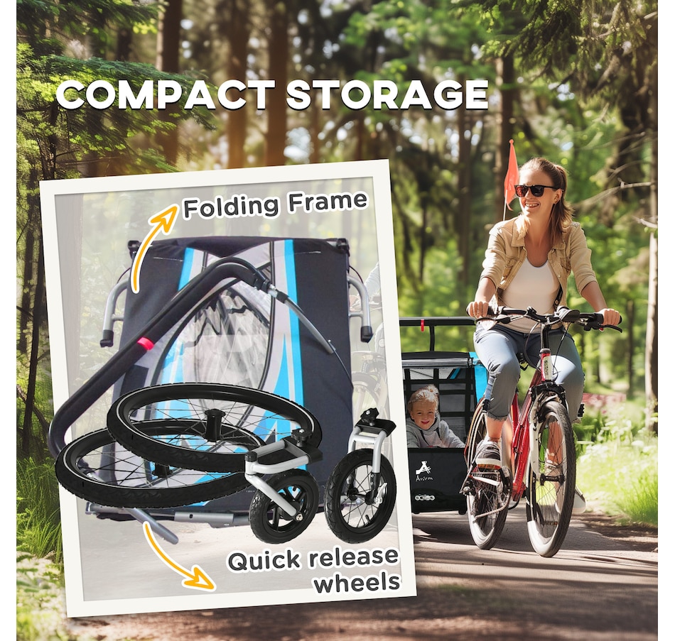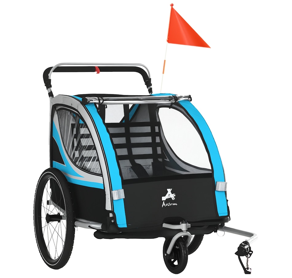 With a 3-in-1 design, this bike cart helps you get the most out of your outdoor activities, whether you're walking, jogging, or riding. Aosom's storage-equipped stroller is ready to accompany you if you choose to continue on foot after biking. This versatile, ultra-safe, water-resistant, and terrain-ready piece of weekend entertainment allows you to pull or push multiple kids, cut across the grass, and pack it away when you're done.