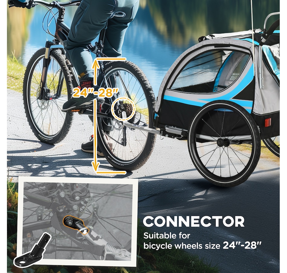 Child Baby Bike Trailer Kids 2 Seater, Bike Stroller Toddler, Blue
