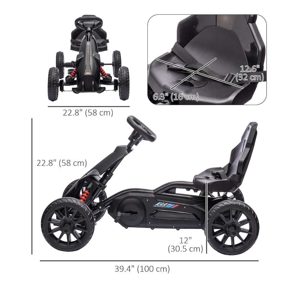 ● Use the pedals to move the go-kart, which promotes physical activity and develops their motor skills;