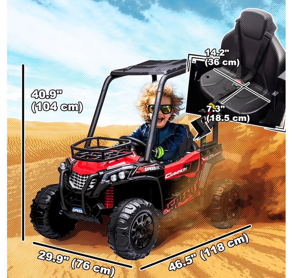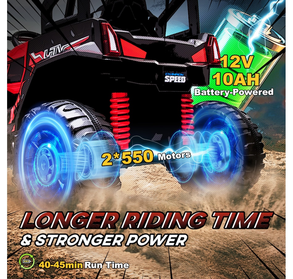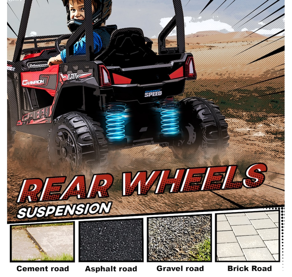 ● Extra-wide tires, seat belt and damping rear wheel design for safe and smooth driving