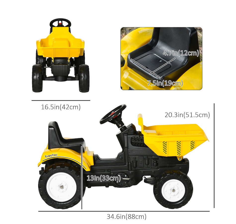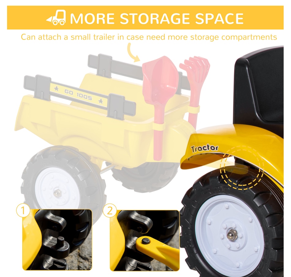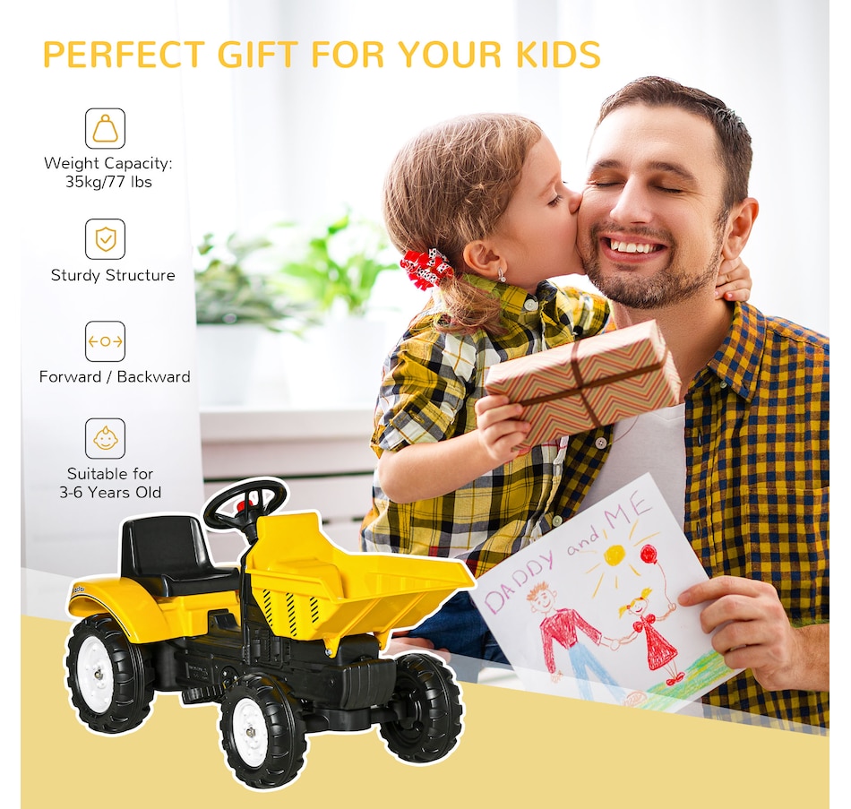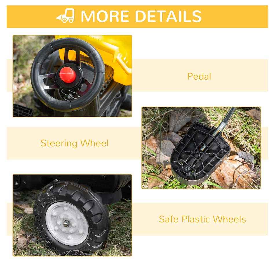 This multi-functional toy offers a lot of fun pretend play construction and a wonderful moment between parents and kids. Move forward and backward, front digger allow kids to operate the excavator with ease. Playing with this ride-on front bucket will provide your child with hours of imaginative play. It helps children's hand and eye coordination, cognitive ability, and fine motor skills.Features: