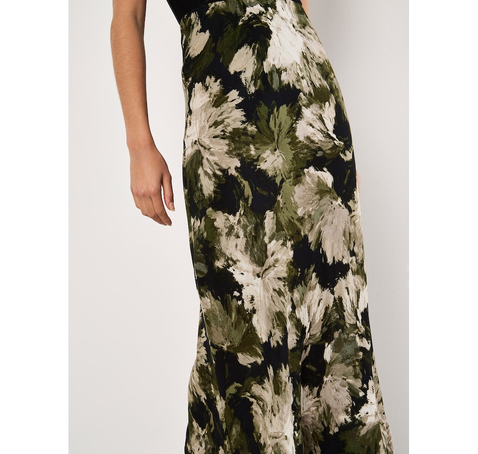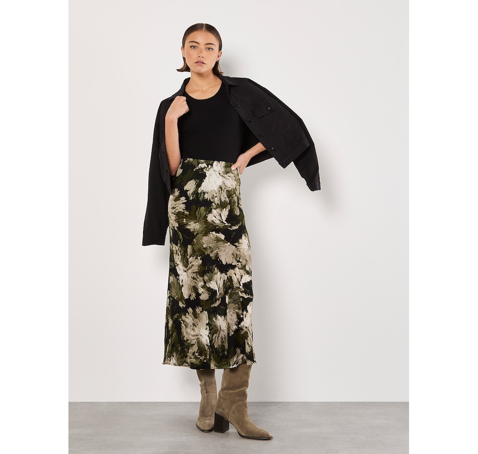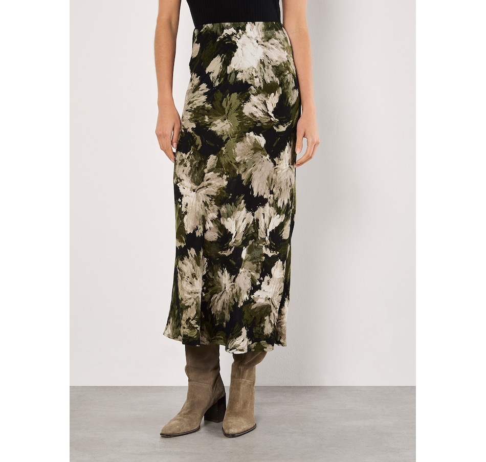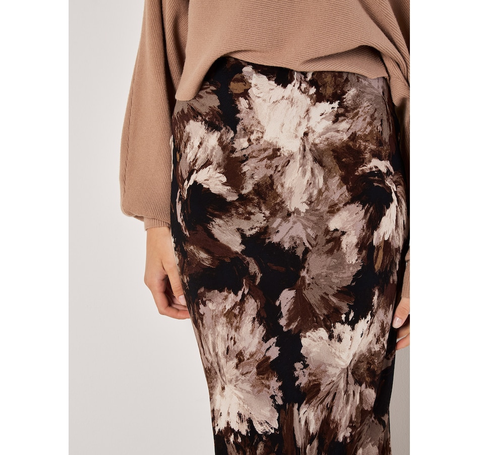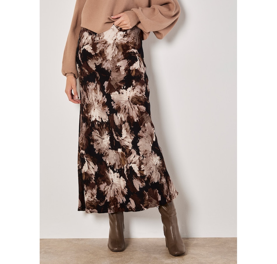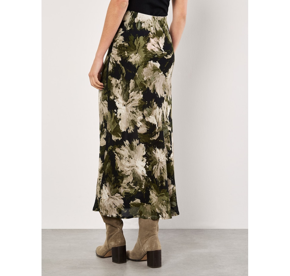 Lightweight and woven, this floaty maxi skirt features a painterly floral print and an elastic waist for a comfortable fit. Style it with a chunky knit and leather boots to complete the look.