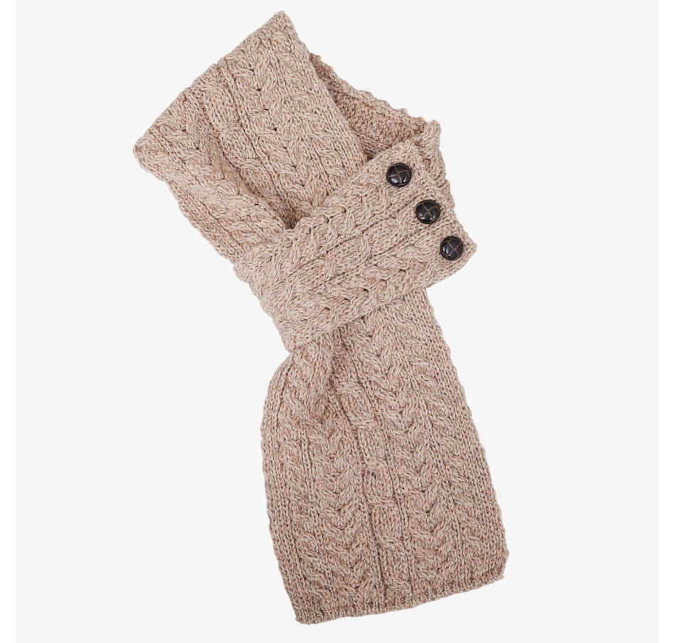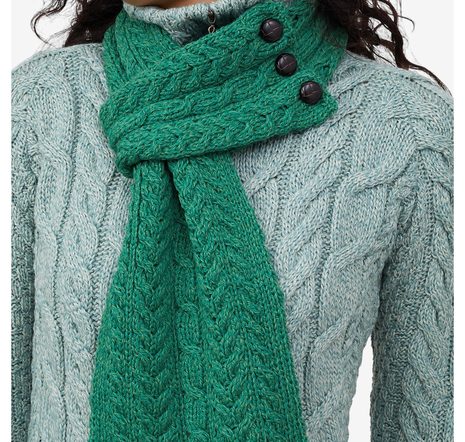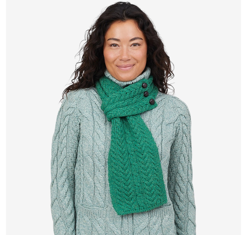 Just in time for the chilly weather, you're going to finish your look in timeless Irish style, and stay cozy too, wearing this buttoned loop scarf from Aran Woollen Mills.