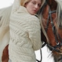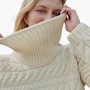 Made from premium Irish Merino wool, this horizontal run cable patterned sweater is designed with a cowl neck, and comes available in a trio of fabulous colours.