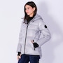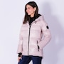 This ladies hi-low horizontal shiny quilted puffer jacket from Arctic Expedition features a fixed hood designed with an oversized tunnel. The Berber-lined hood and micro-fleece lined pockets make for extra softness and warmth, and the bungee cords with stopper allow for a customizable fit every time. There's also stretch storm cuffs with thumbholes to keep heat in and block wind from entering.