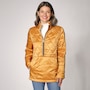 This super versatile pull-over quilted jacket than can be worn comfortably both indoors and outdoors. It has three different quilting patterns on the body and sleeves to accentuate your look.