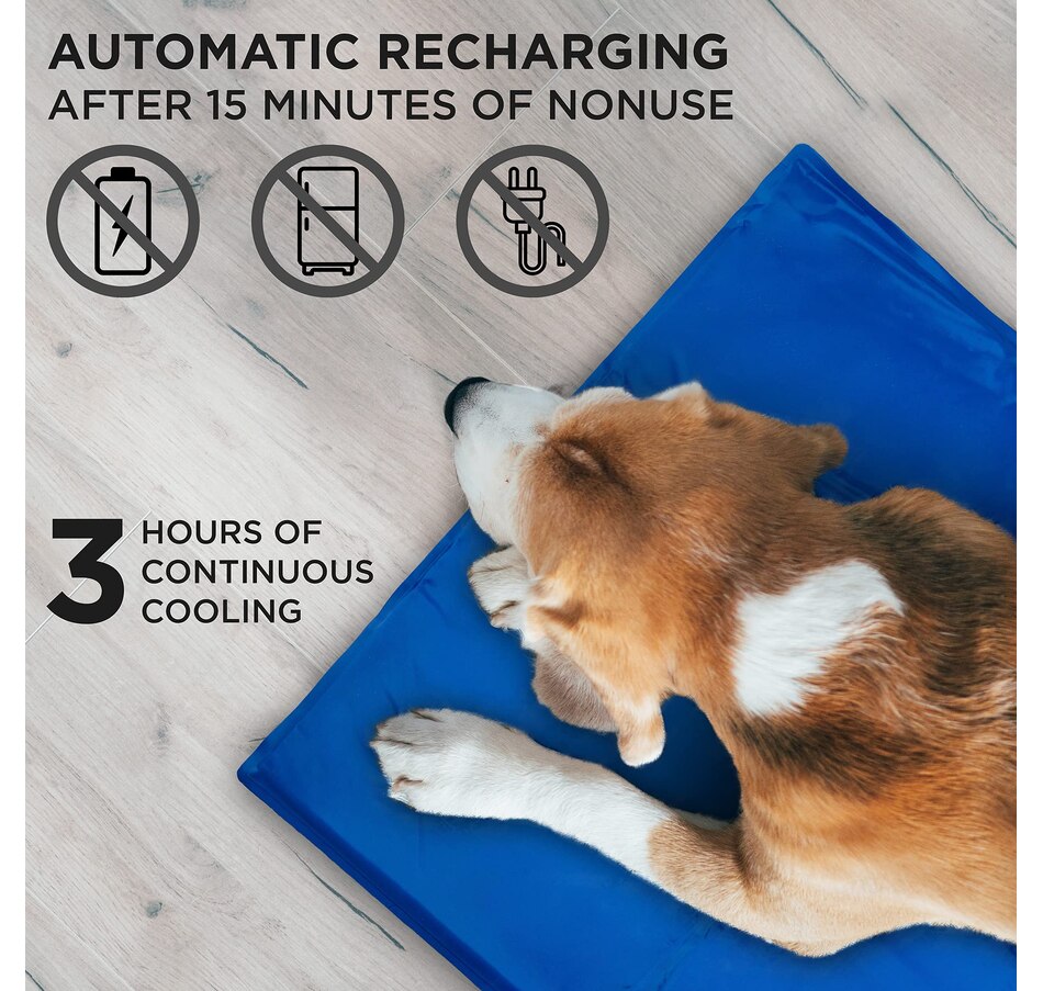 - Lay down on it for up to 3 hours of cool comfort, and the mat recharges after 15 minutes of nonuse