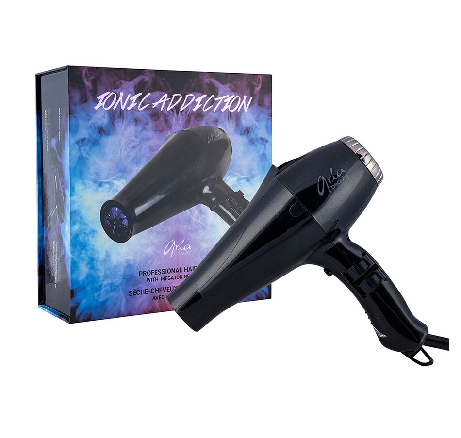 With a sleek ergonomic design and Ultra-quiet yet powerful motor, the Ionic Addiction Professional Hair Dryer will Infuse your hair with a mega boost of negative ions to create silky, static-free hair while you blowdry!It is also equipped with a mega ion generator that reduces drying time and helps remove frizz on all hair types.