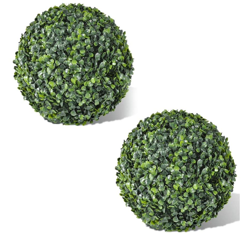 This set of 2 artificial boxwood balls, each with a diameter of 35cm, is perfect for indoor and outdoor use. It can be placed in pots or planters, or hung with a hanging chain. You can also decorate the balls with light to enhance your interior or garden landscape. Made of high-quality plastic, this boxwood set is weather-resistant for long-term outdoor use. With a lush mixed green color and natural texture, the artificial boxwood balls look authentic. Delivery includes 2 artificial boxwood balls.
