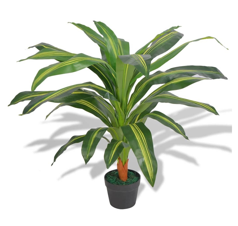 Add some greenery to your interior with this realistic artificial dracaena plant. The dracaena plant is 90 cm tall and will be the ideal choice for your home or office interior. The plant has 25 leaves with perfect details, giving it a full and realistic look and it will never wither. The leaves have green and yellow color variations for a realistic look and feel. This decorative artificial plant is made of high quality materials and is very durable. It is ideal for those who want to have plants in their home but do not have the time to take care of them. Delivery includes 1 artificial plant and 1 pot.