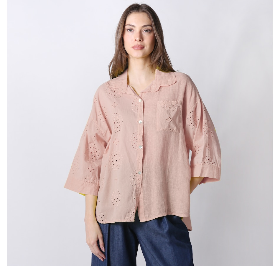• Loose fit, 3/4 length sleeve, button closure, pockets