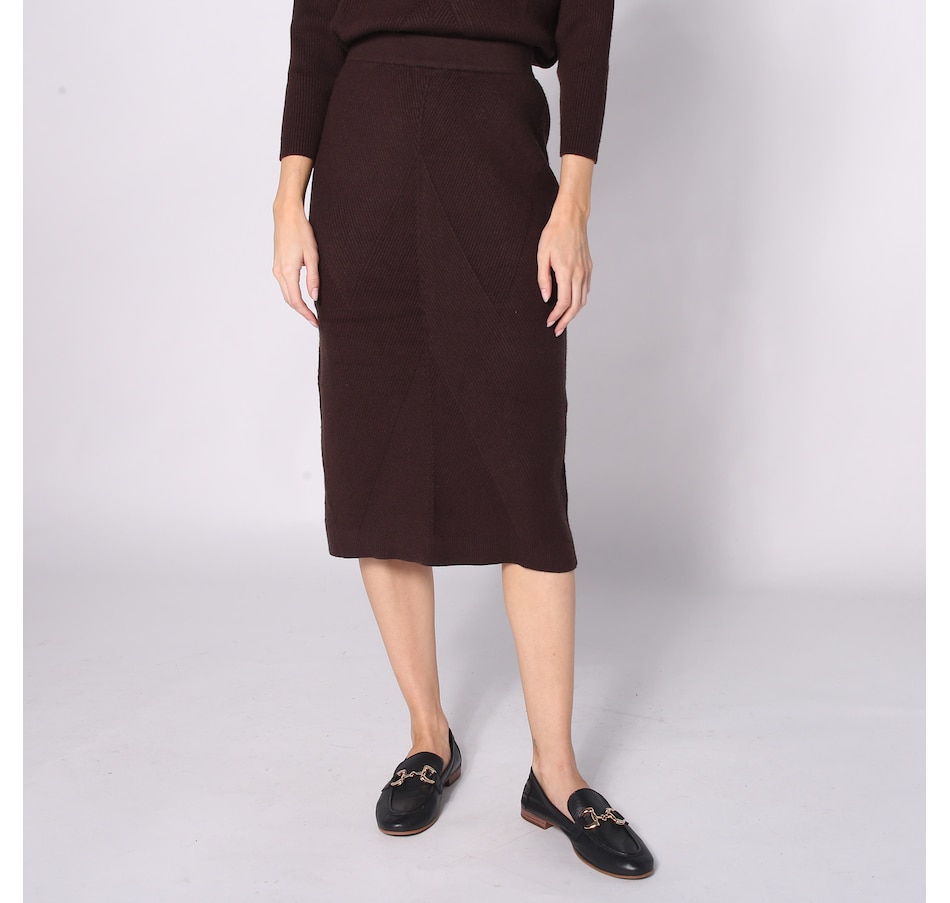 A beautiful versatile classic, you'll add to your fall look in elevated style with the Mellow knit midi skirt from Astrid.