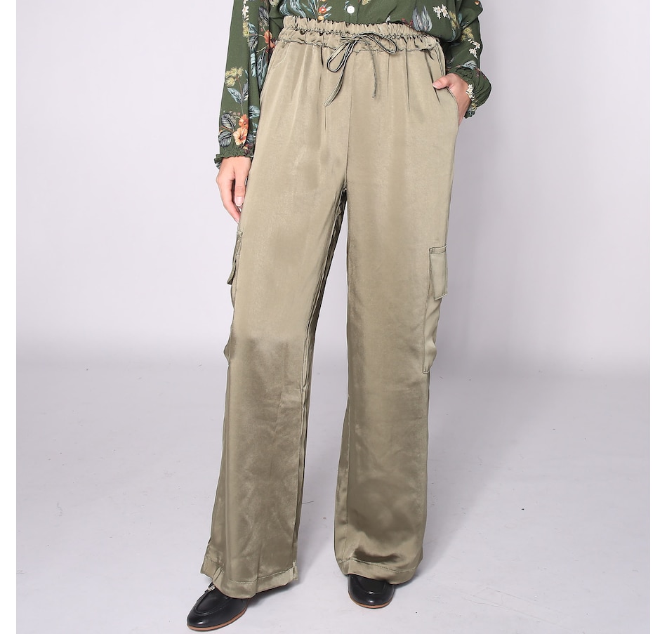 Add something fabulous to your wardrobe wearing the R & B satin cargo pant from Astrid.