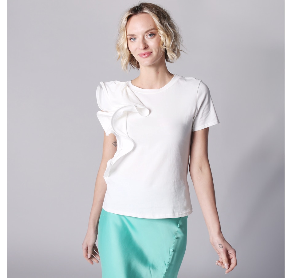 Centre your look in vibrant, exciting style with the Reset ruffle t-shirt from Astrid!