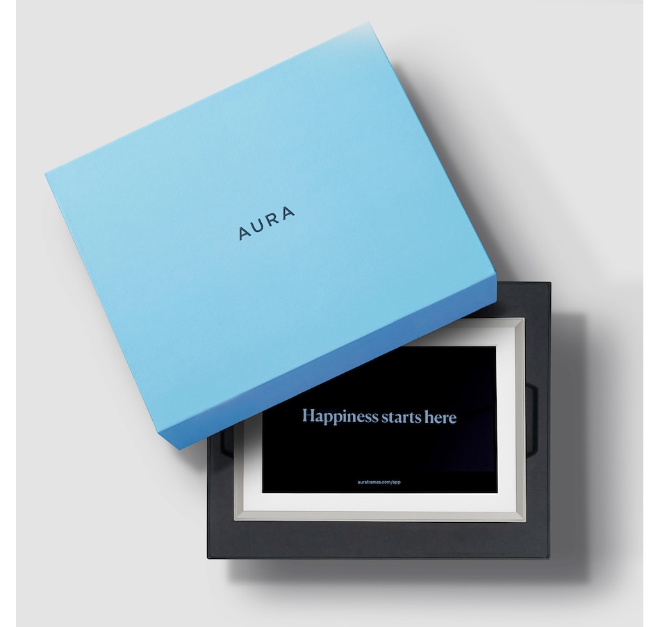 • Simple set-up, from phone to frame: just plug in your frame, connect to your Wi-Fi network, and the Aura app will guide you through the rest