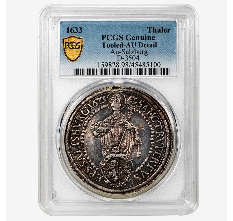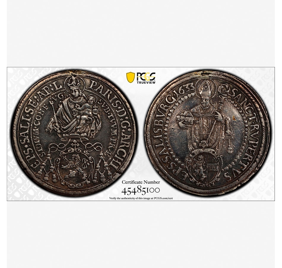 • Austria-Salzburg 1633 Madonna Thaler, Paris von Lodron, PCGS AU50 Detail