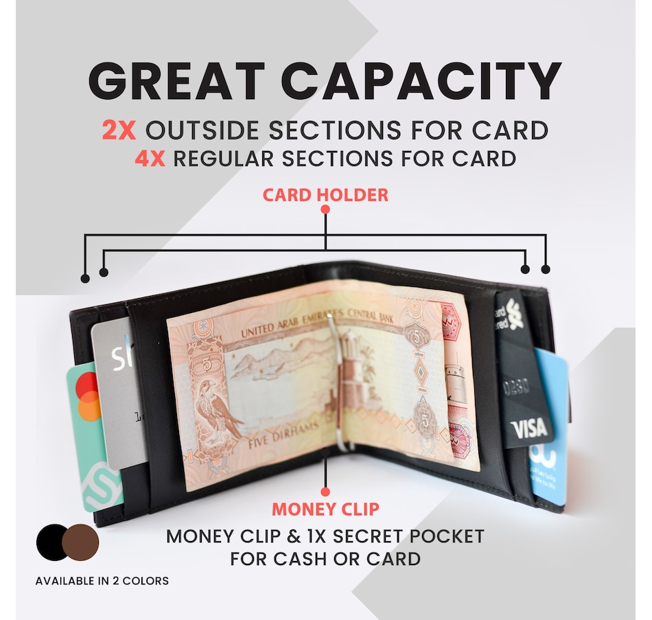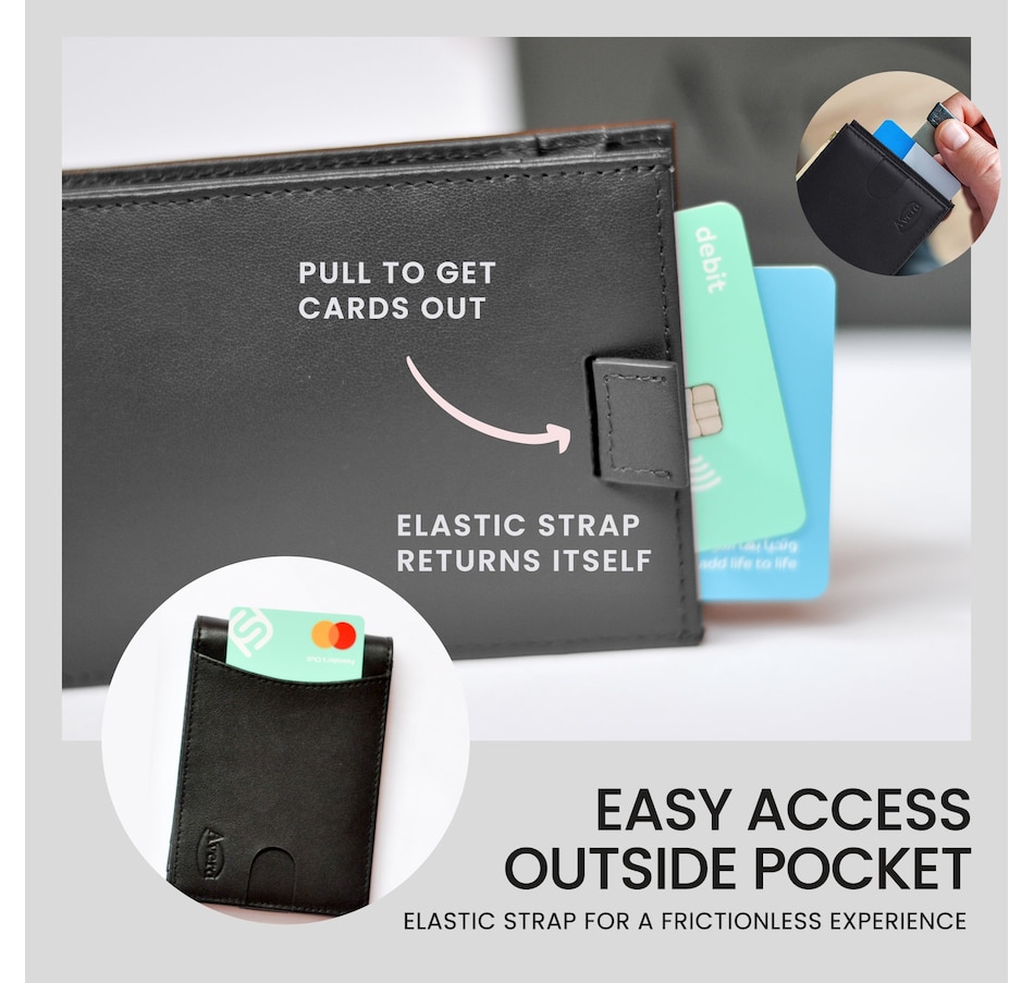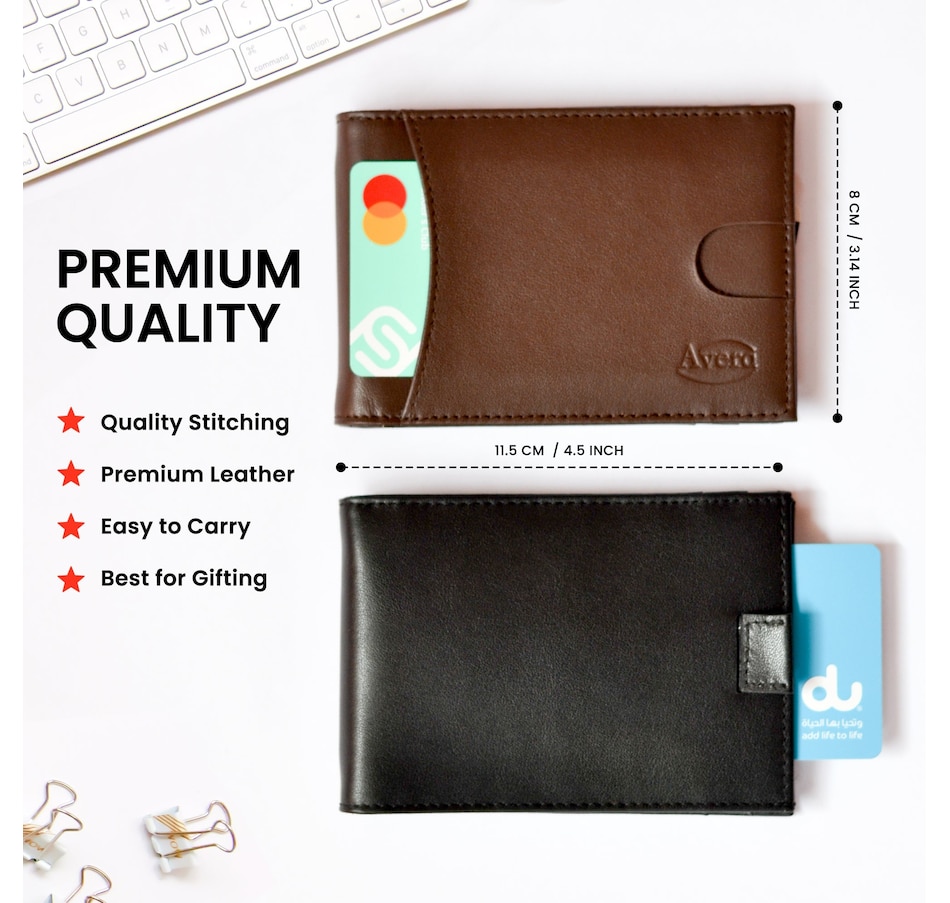 Avera Group Wallet Leather Rfid Blocking Money Clip Pull Strap Introducing our exquisite Avera Group Wallet Leather Rfid Blocking Money Clip Pull Strap , an elegant addition to your home that seamlessly blends style and functionality. Crafted with utmost precision and using high-quality, durable wood, this Avera Group Wallet Leather Rfid Blocking Money Clip Pull Strap is designed to stand the test of time while enhancing the aesthetic appeal of your dining space. Premium Material: Meticulously crafted from solid wood, known for its durability, strength, and natural beauty. The rich grains and unique patterns of the wood add a touch of sophistication to any interior. Timeless Design: Features a classic design with clean lines and a smooth surface, ensuring it complements various home decor styles. Its versatile nature makes it perfect for both modern and traditional settings. Sturdy Construction: The sturdy construction guarantees stability and long-lasting performance Easy Maintenance: The smooth finish facilitates effortless cleaning, allowing you to maintain its pristine appearance with minimal effort. Eco-Friendly: As advocates of sustainability, we take pride in using responsibly sourced wood to create our furniture, promoting eco-conscious living. The thinnest and minimalist wallet: Only 0.4 inches. Size 4.3" x 2.95" inches. Best Fits 8-12 cards and built in money clip that holds up to 25 bills for easy access. So slim and small that you can hardly feel its presence. 1 outside card slot for easy access, 4 inside card slots, a next generation first of it is kind auto retracting pull tab strap that holds up to 5 cards that allows access without opening your wallet.An inside pocket for items you need to use infrequently or items that don't fit a standard wallet. Outfitted with advanced RFID blocking technology, these slim wallets for men block electronic signals to keep your information protected while you travel, shop or explore.It is one of the most special gifts for Groomsmen, Birthdays, Anniversaries, Father's Day, Christmas and other Special Occasions. Guaranteed from Manufacturer Defects. Satisfaction guaranteed. Bifold and easy closure, Combining luxurious style and functionality. Durable and long lasting