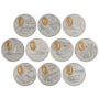 Coins in beautiful 10 coin display case made from recycled Canadian Airplanes.