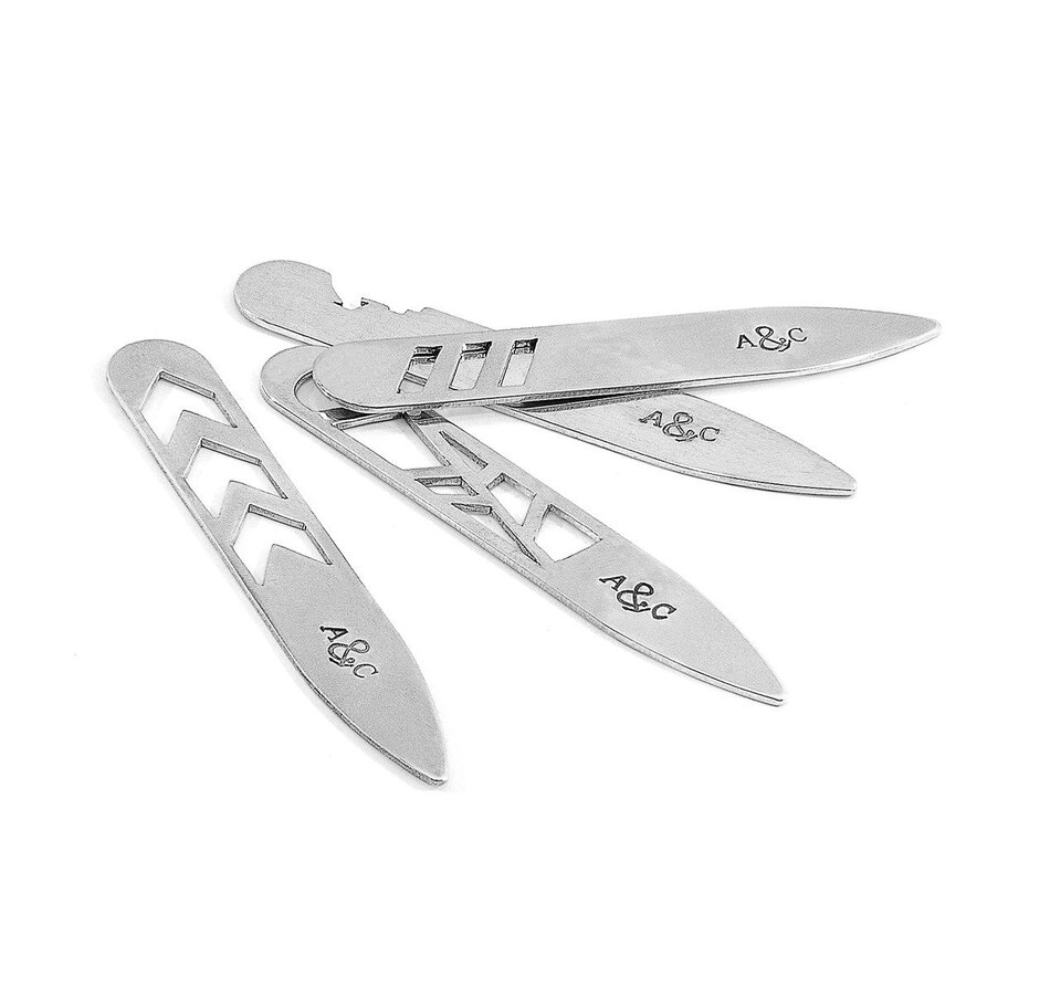 The Axton Anchor Cutout Silver Collar Stay Pair was both designed and skilfully handcrafted completely in Great Britain. Combining British craft manufacturing with a discerning modern-minimalist style, this ANCHOR & CREW collar stay pair features: Two solid .925 sterling silver stiffeners, flat and refined. Features half-anchor cutouts (GB)Matching jewellery design: Axton Anchor Cutout Silver BangleSIZINGThis collar stay pair is available in one size only, measuring 1cm (0.4") wide x 6cm (2.4") long and are suitable for shirts with standard collar stay pockets in their collars. These collar stays arrive as a pair and cannot be purchased singularly. Less is More.