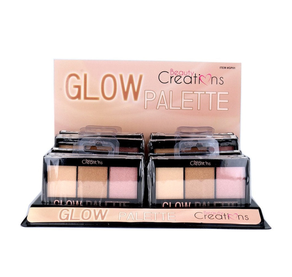 The Beauty Creations Glow Palette comes with three blush powders to help you achieve a healthy radiant glow. This display set comes with twelve pieces. Net Wt. 0.48 oz X 12 / 13.5 g X 12