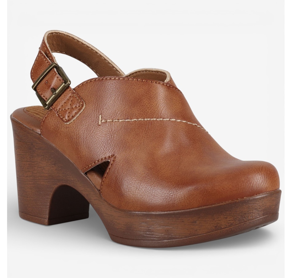 Step into standout style with the BOC Born Concept Cecilia slingback clog, a bold platform design crafted to elevate every outfit. Its burnished, hand‑finished upper adds rich depth and sophistication, while the adjustable slingback strap means a secure, customized fit. The wood‑grain–covered wedge and platform create a striking silhouette that’s equal parts fashionable and comfortable, giving you height without sacrificing ease.