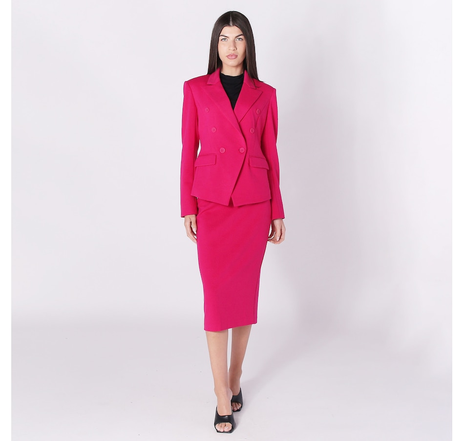 Elevate your look in classic style wearing this gorgeous jacquard pencil skirt from Badgley Mischka. A signature piece for the designer, it pairs beautifully with the companion blazer for a complete suit look. Its versatility makes it an ideal piece for almost any occasion.
