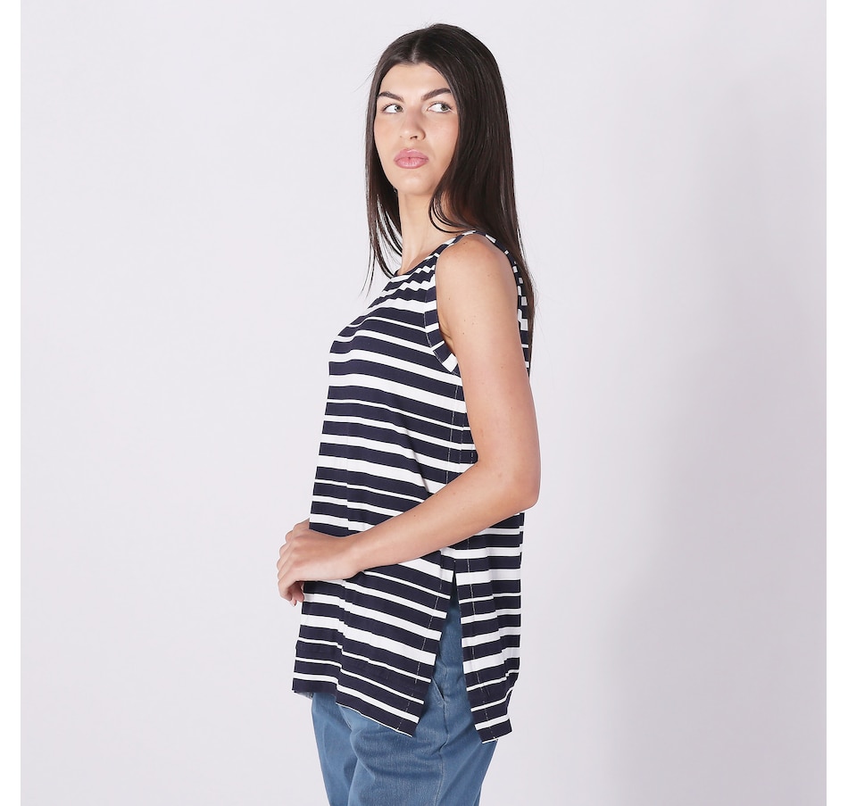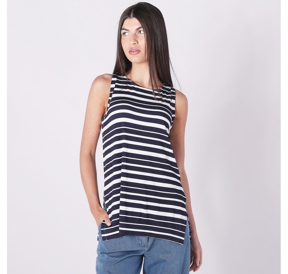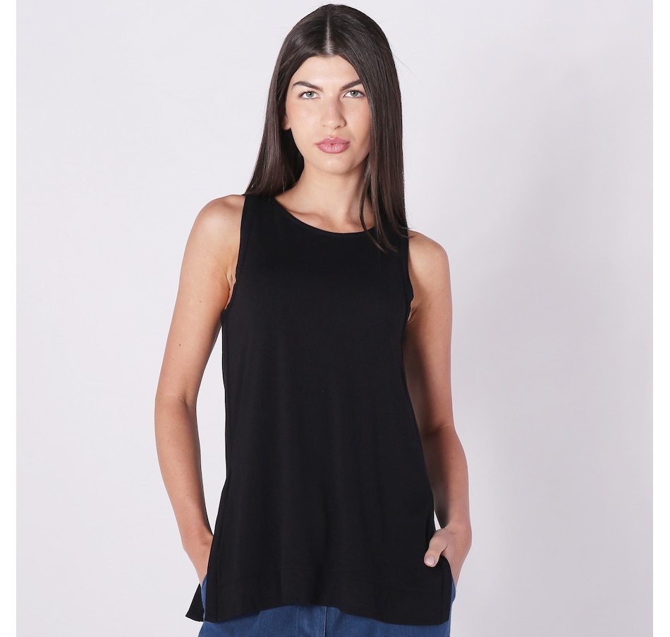Centre your look in defined style wearing this double layer boatneck tank from Badgley Mischka. Made with a lot of stylish attitude, it features high slit openings and a framing around the edge to give it more weight and hang straight in a near-trapeze type shape. It looks equally great with jeans or a pencil skirt. This elevated piece is sure to become a staple in any wardrobe.