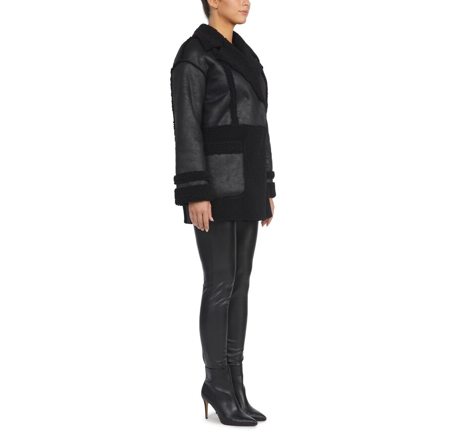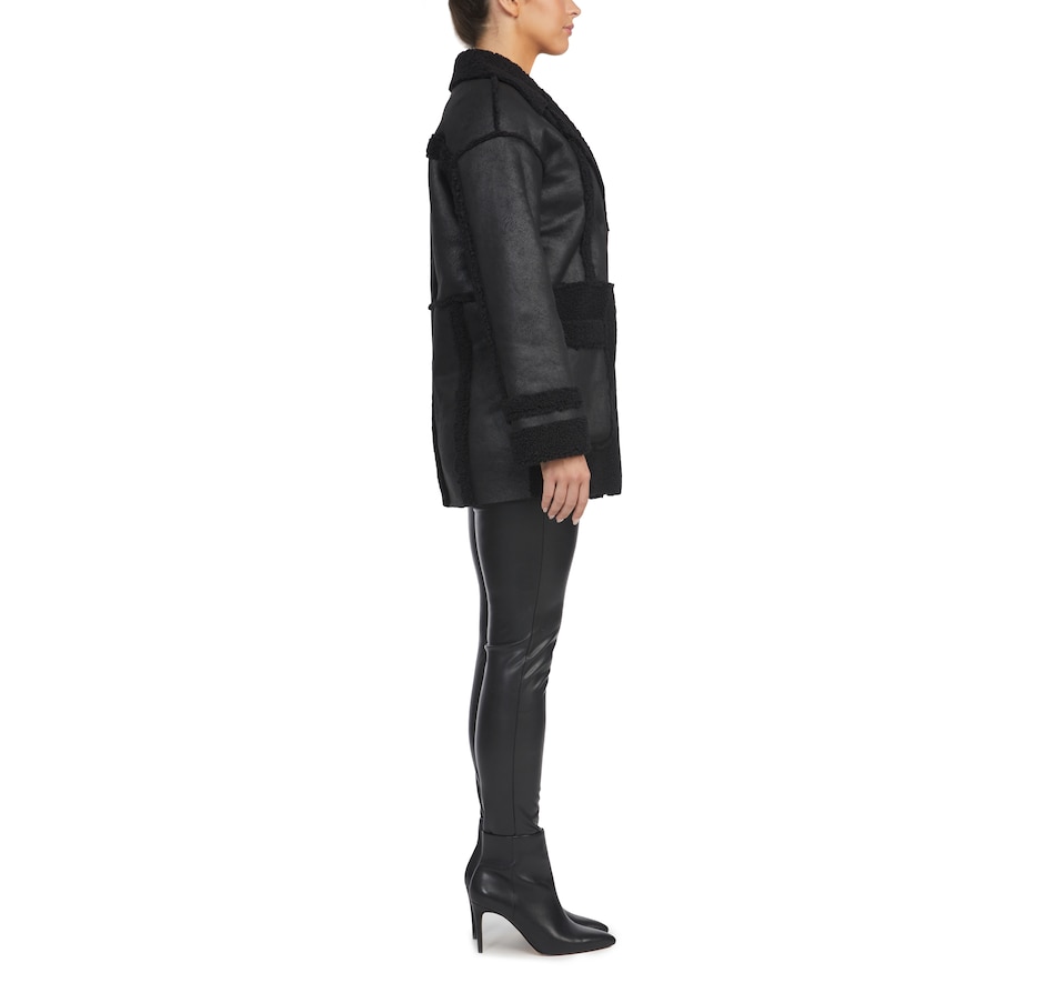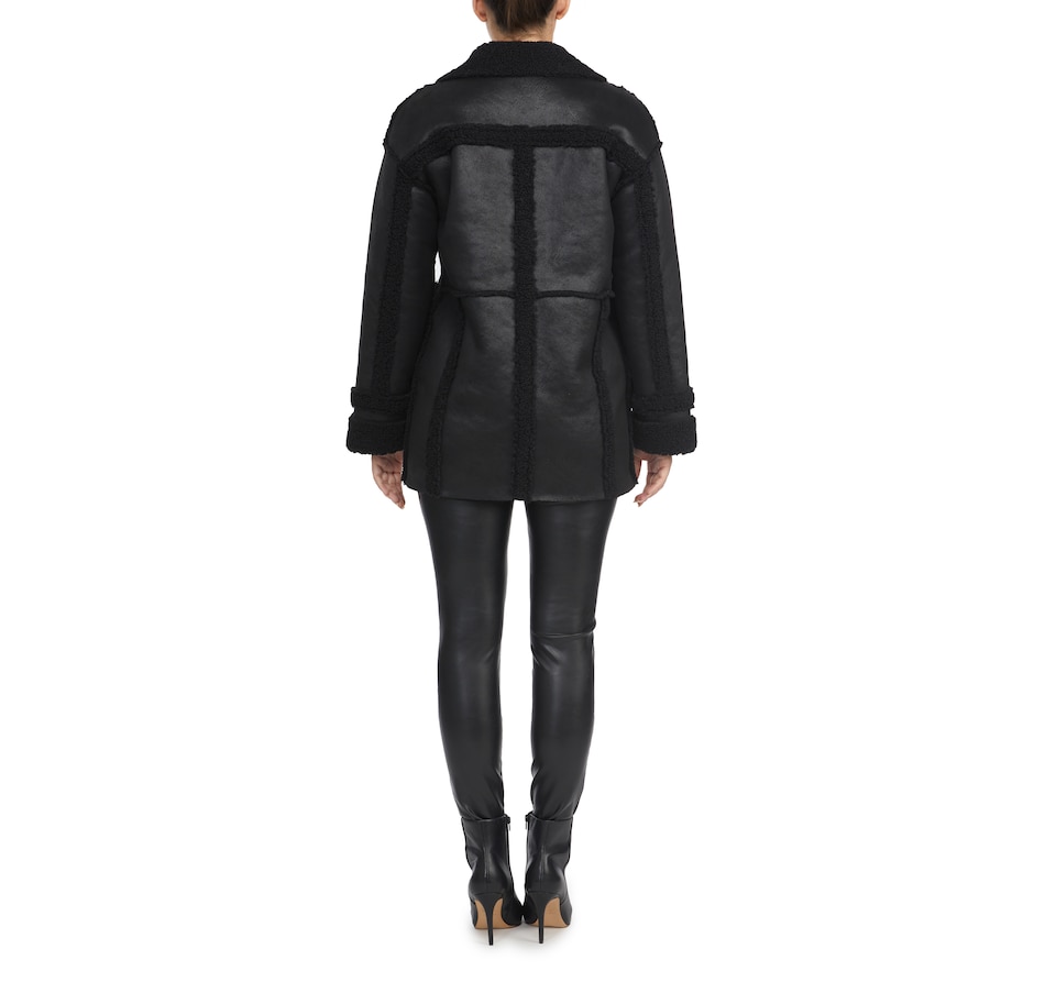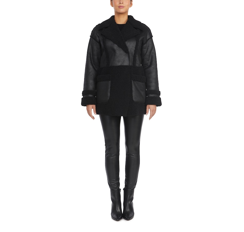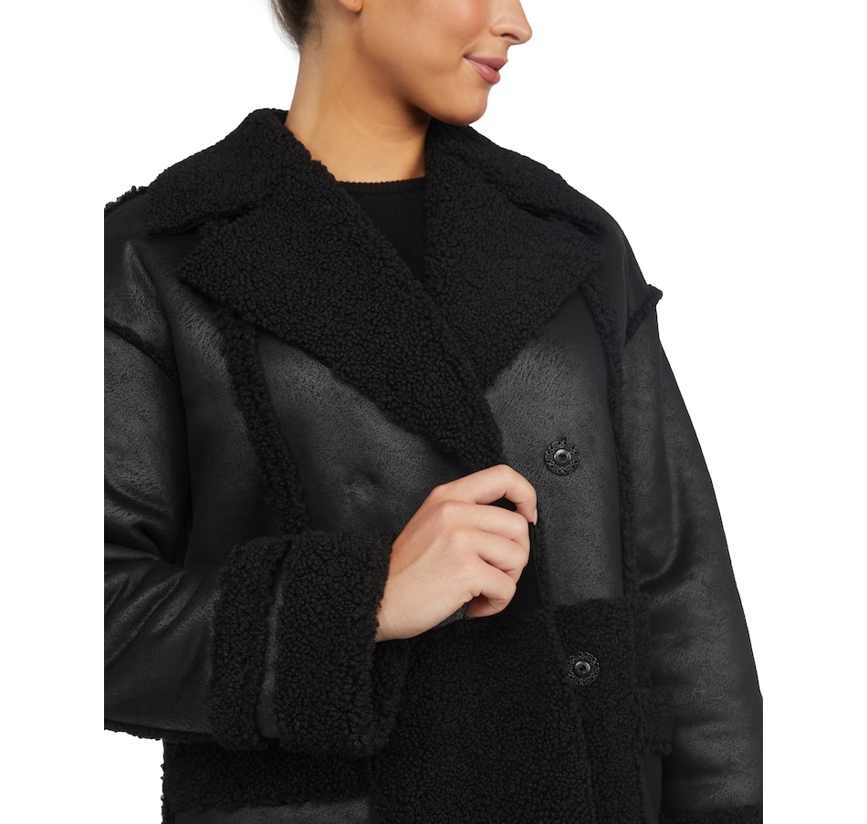 Finish your fall look in easy, versatile style wearing this faux shearling double breasted jacket from Badgley Mischka.